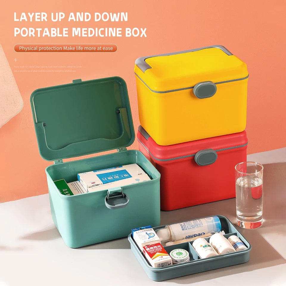 Portable First Aid Kit Box Container Medicine Pill Storage Box Family Emergency Kit Storage Organizer with Handle Medicine Chest