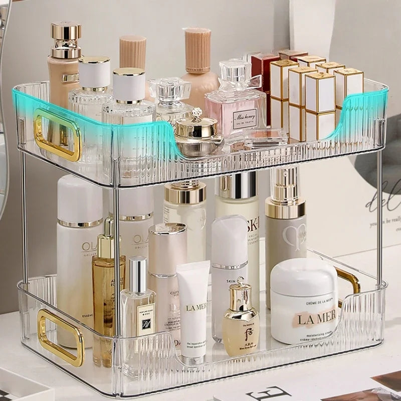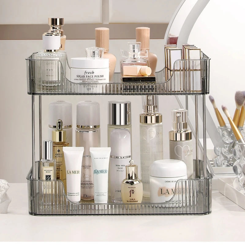 【Multi-functional storage】: This double-layer makeup storage tray can be used in multiple scenarios such as bathroom, kitchen, bedroom, etc. It can help you organize and store various items, making the space more neat and orderly.