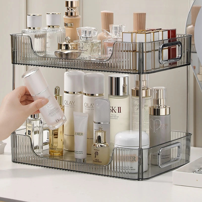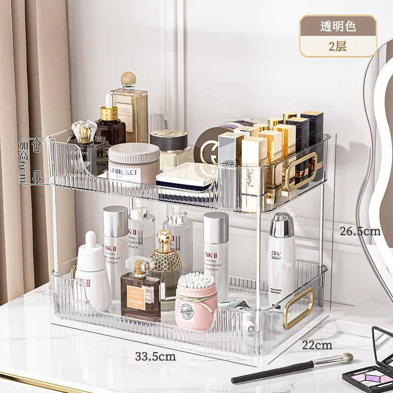 【Spacious and transparent】: Made of high-quality, corrosion-resistant acrylic material with a smooth and strong surface. The double-layer design allows you to better utilize vertical space, and the transparent tray allows you to see items at a glance, making it convenient and quick.
