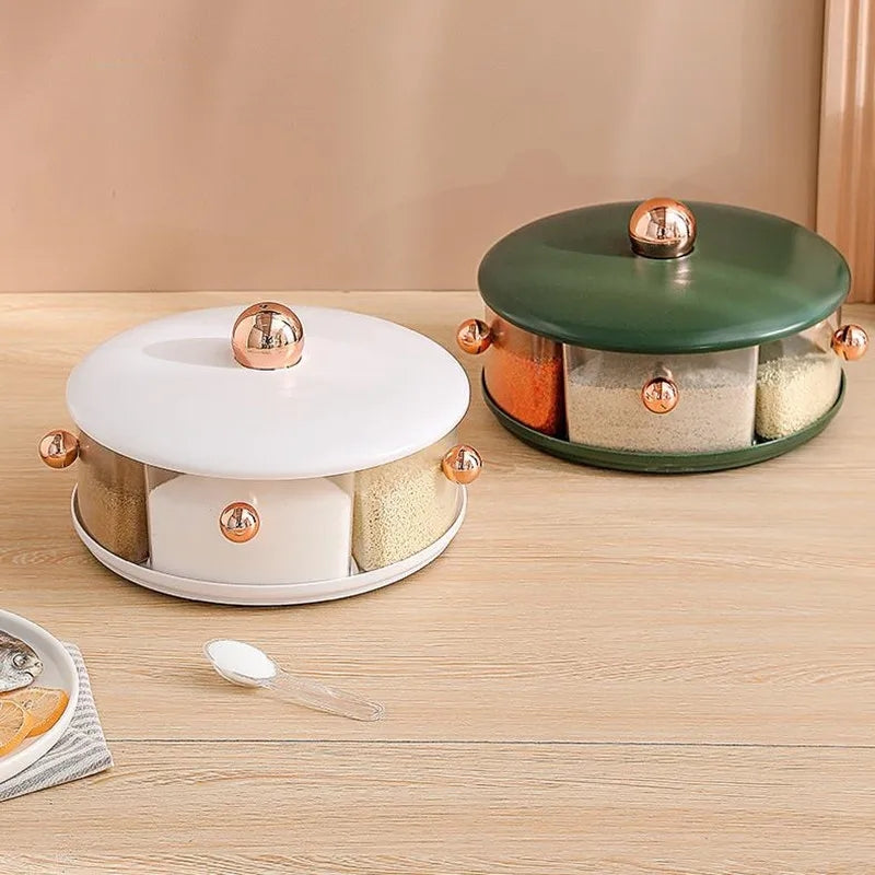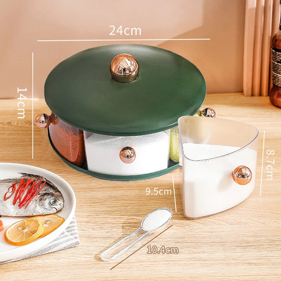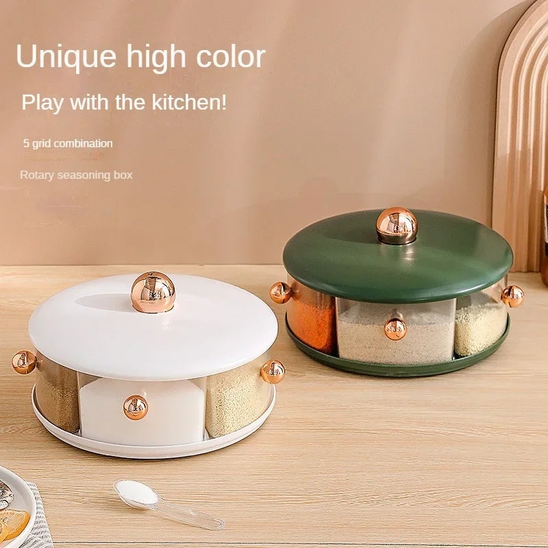 Spice box set has a large capacity, 5 compartment spice dispenser