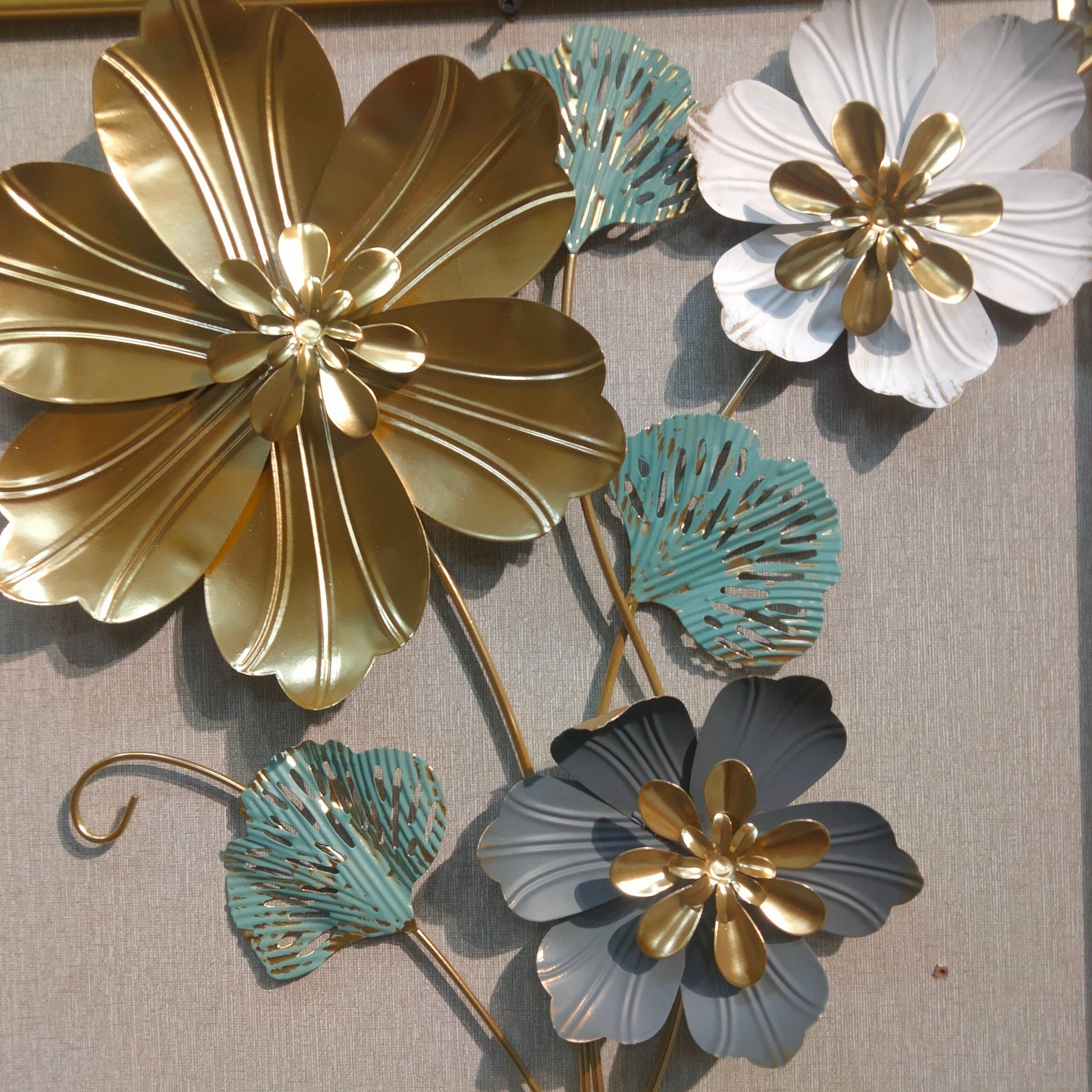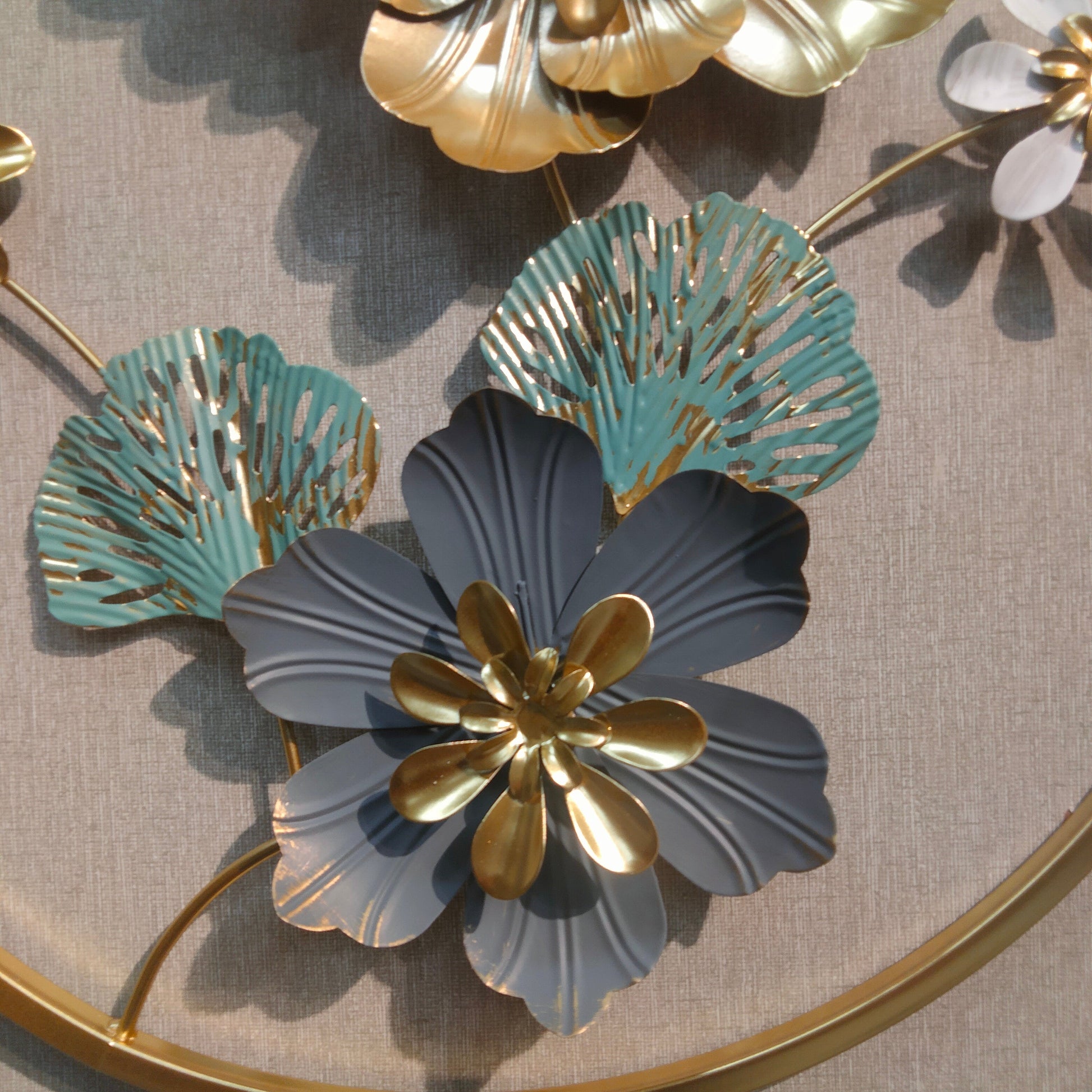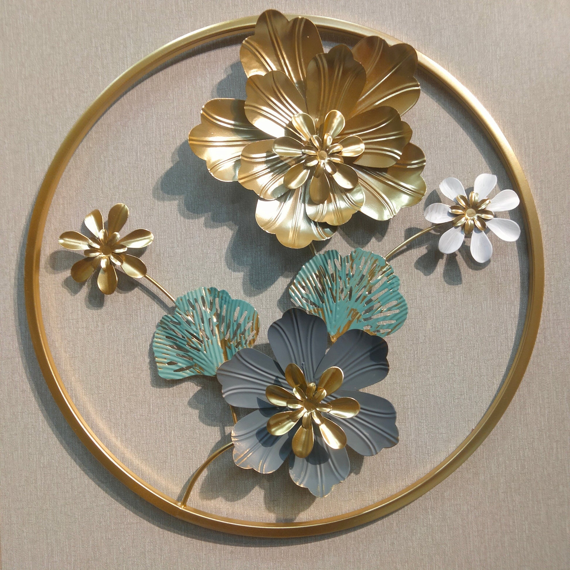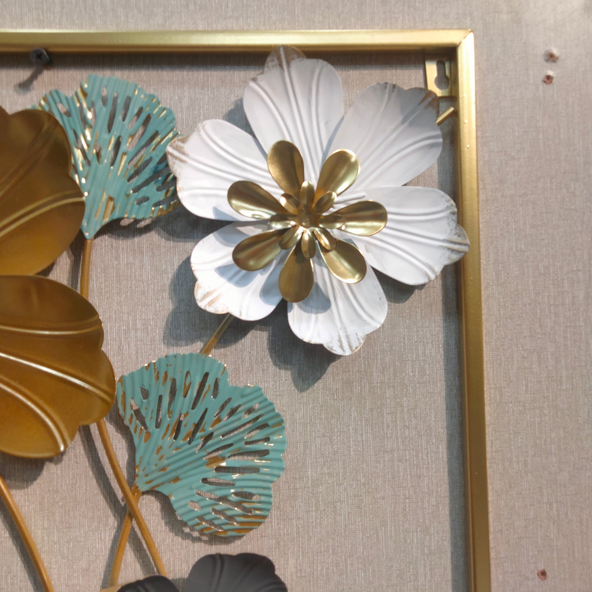 Elevate your interior with this 3D metallic wall decoration featuring an intricate arrangement of leaves and flowers. Crafted with precision, its dimensional design adds depth and texture, creating a captivating focal point for any room. The metallic finish enhances durability while complementing both modern and classic decor styles. Ideal for living spaces, offices, or entryways, this piece combines artistic elegance with lasting quality.