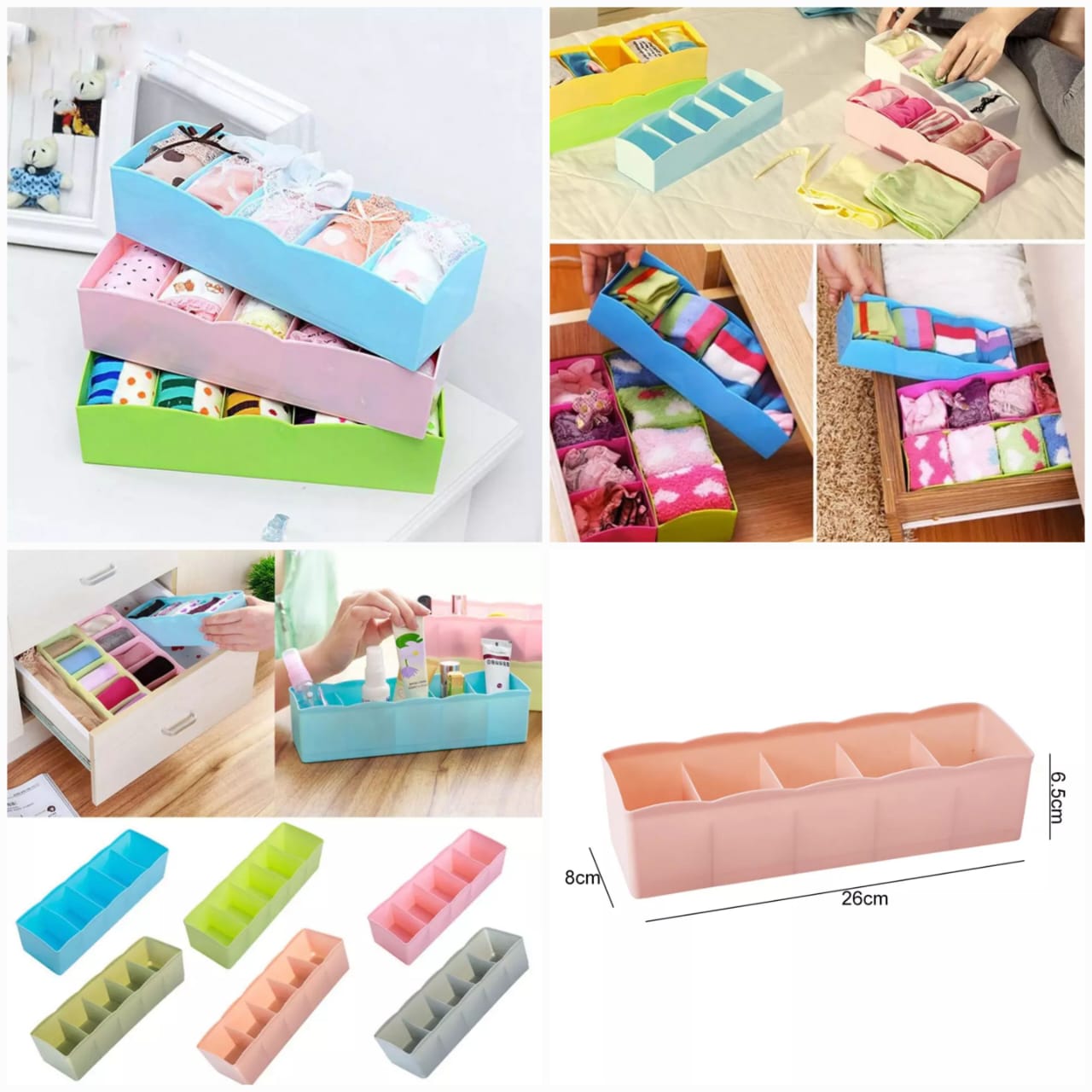 5 Girds Socks Underwear Panties Storage Boxes Ties Cable Drawer Divider Bins Organizer Wardrobe Stackable Case Home Organization