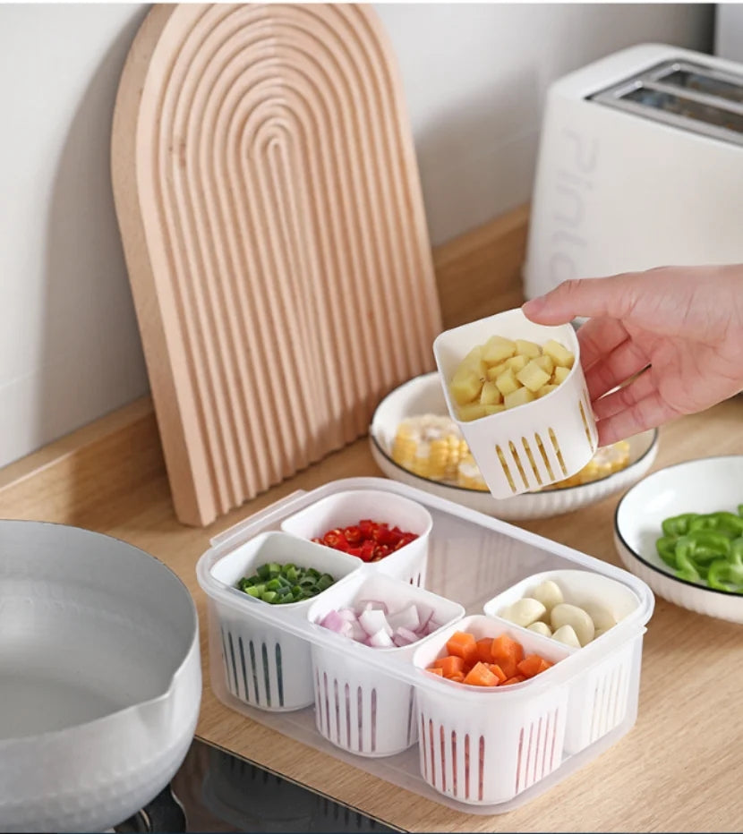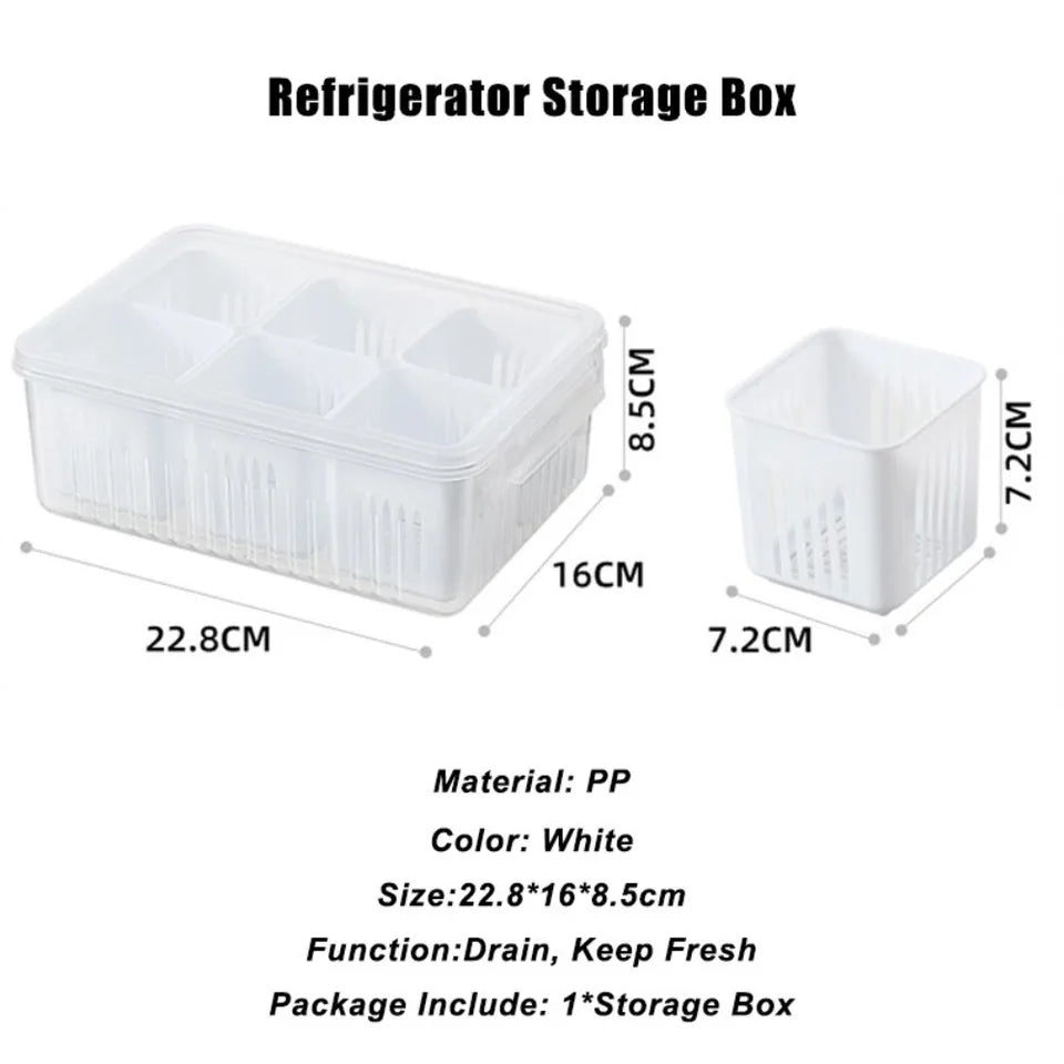 【Convenient Classification】· Each set of boxes has six small boxes of the same size, so you can sort and manage food according to your needs, and each small box also has the function of draining water.