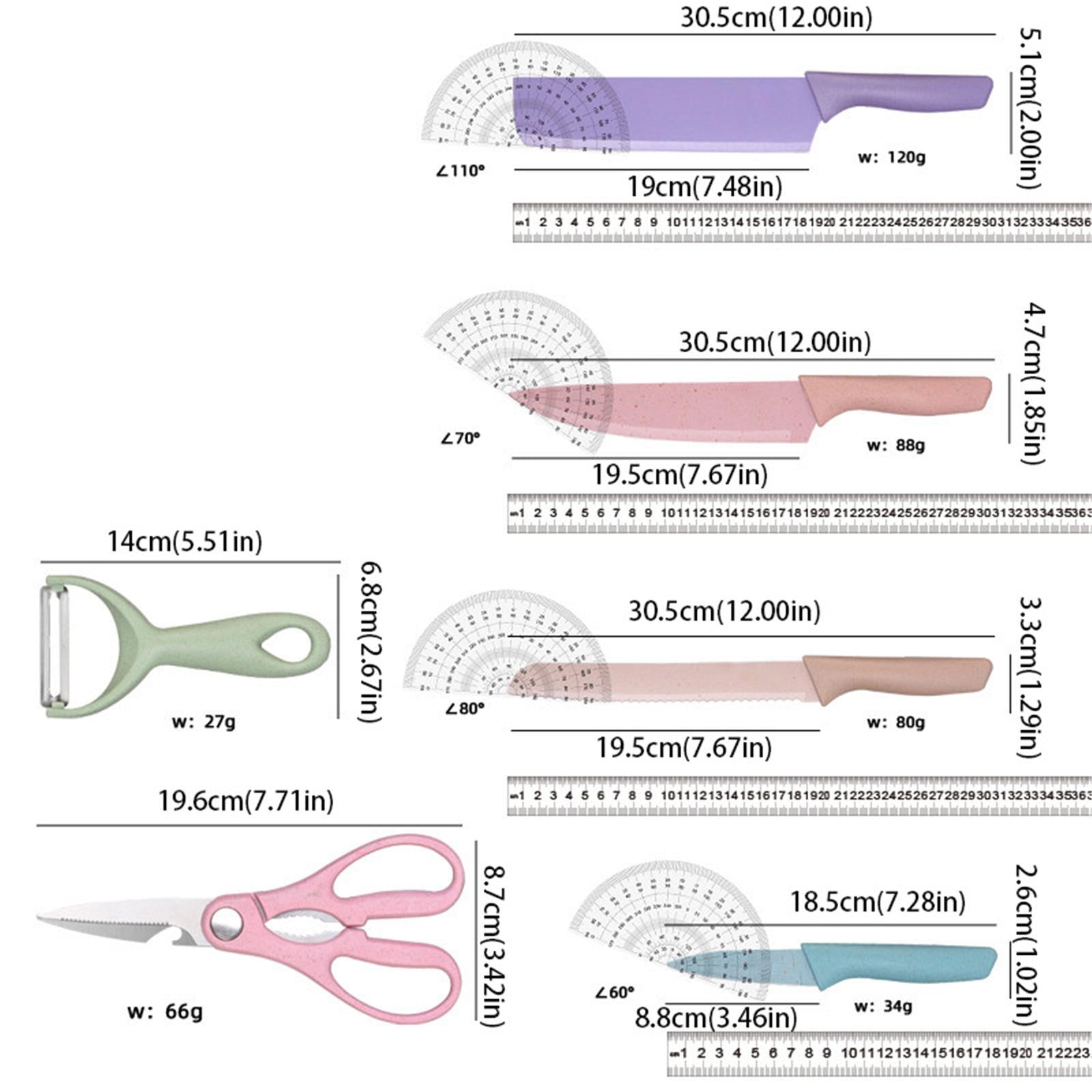 Type 1 : Kitchen knife Type 2 : Chef knife Type 3 : Universal knife Type 4: Fruit knife Type 5: Scissors
