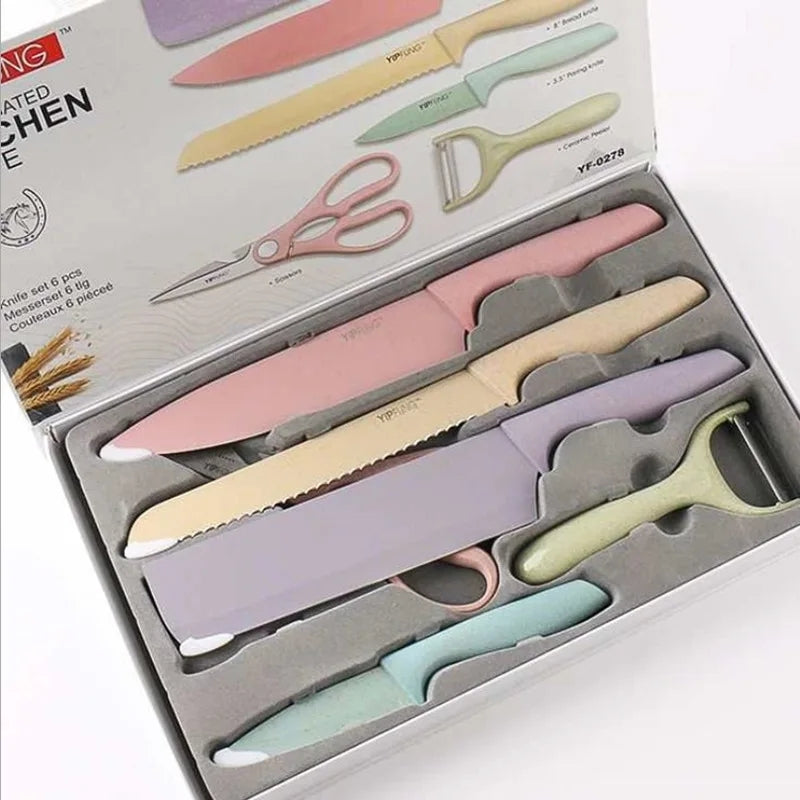 6Pcs Stainless Steel Colorful Knife Set