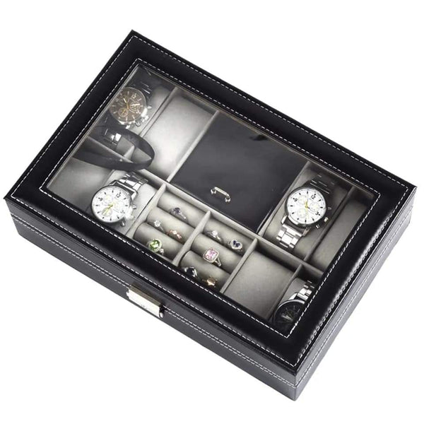 Organize and protect your jewellery and watches with this 8-slot jewellery and watch organizer. Made from pu leather with a soft velvet lining, this box is perfect for storing and displaying up to 8 watches and pieces of jewellery. Keep your items in pristine condition and easily accessible.
