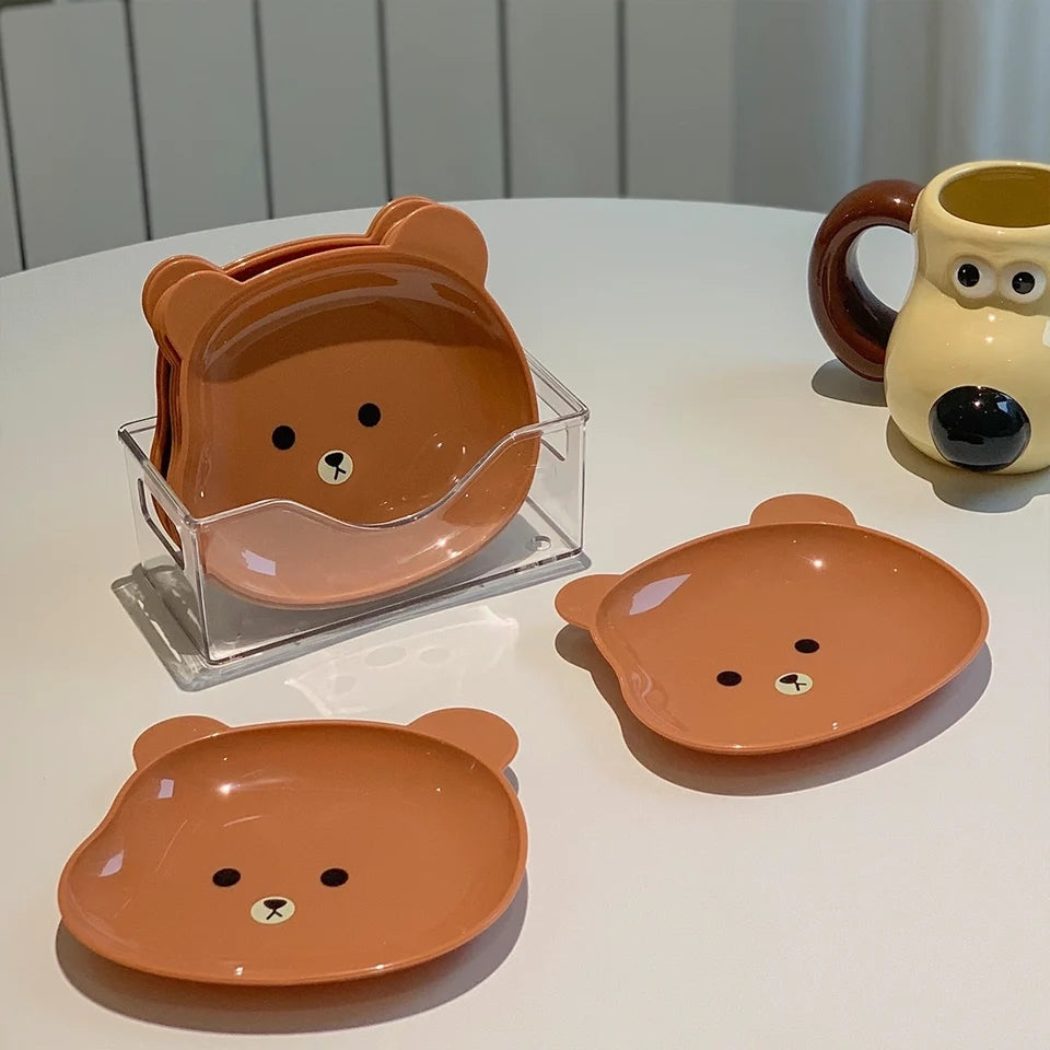 8 PC Table Garbage Spit Bone Dish,Cute Cartoon Bear Dish Used for Dry Fruit Snack Pan Fruit Dishes Saucer Tea Tray Dessert Dinner Plate with Storage Box