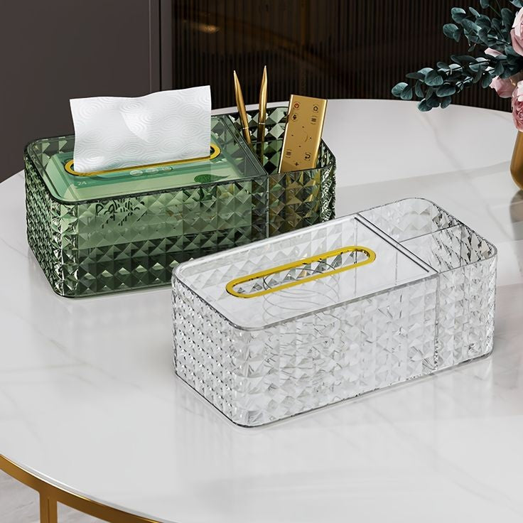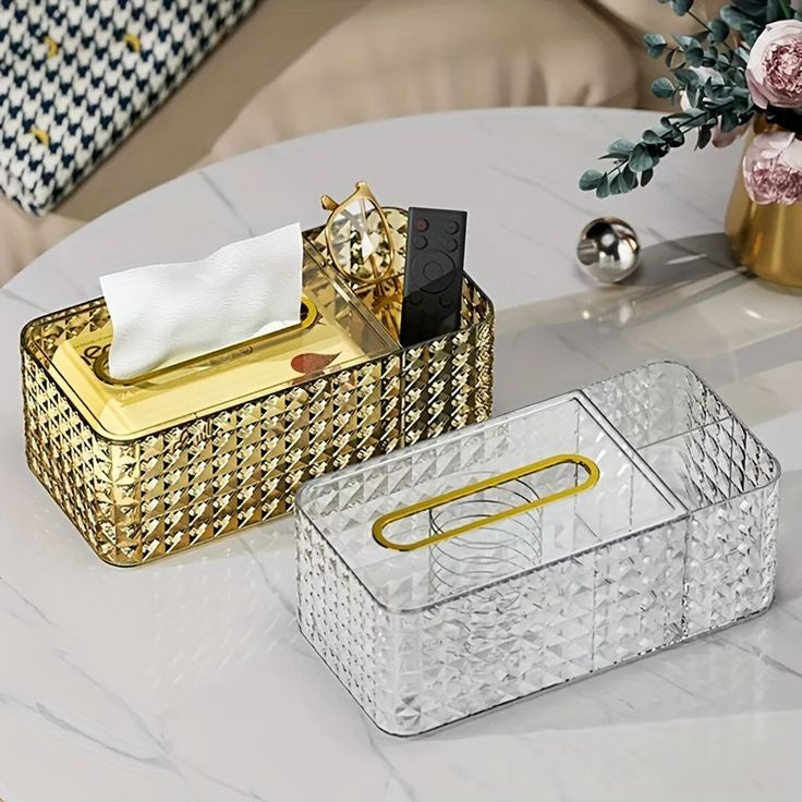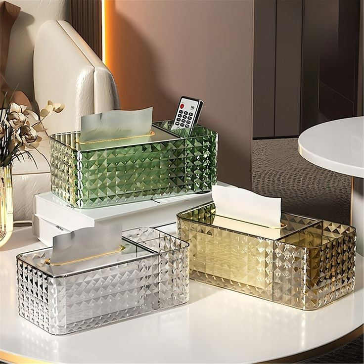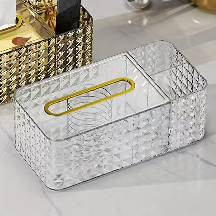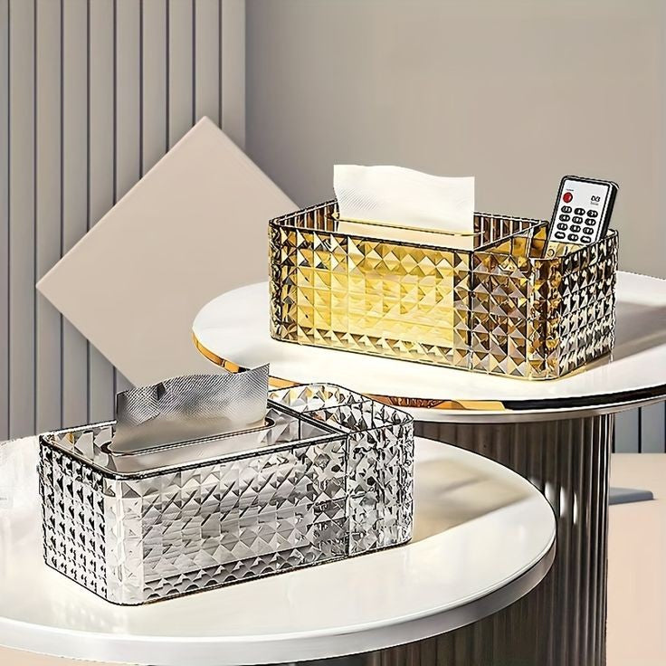 【Diamond Look Clear Tissue Box】This tissue box with transparent design, crystal clear, modern and stylish, it is a perfect decoration for the dining table or dressing table. And there are 3 colors to choose from.