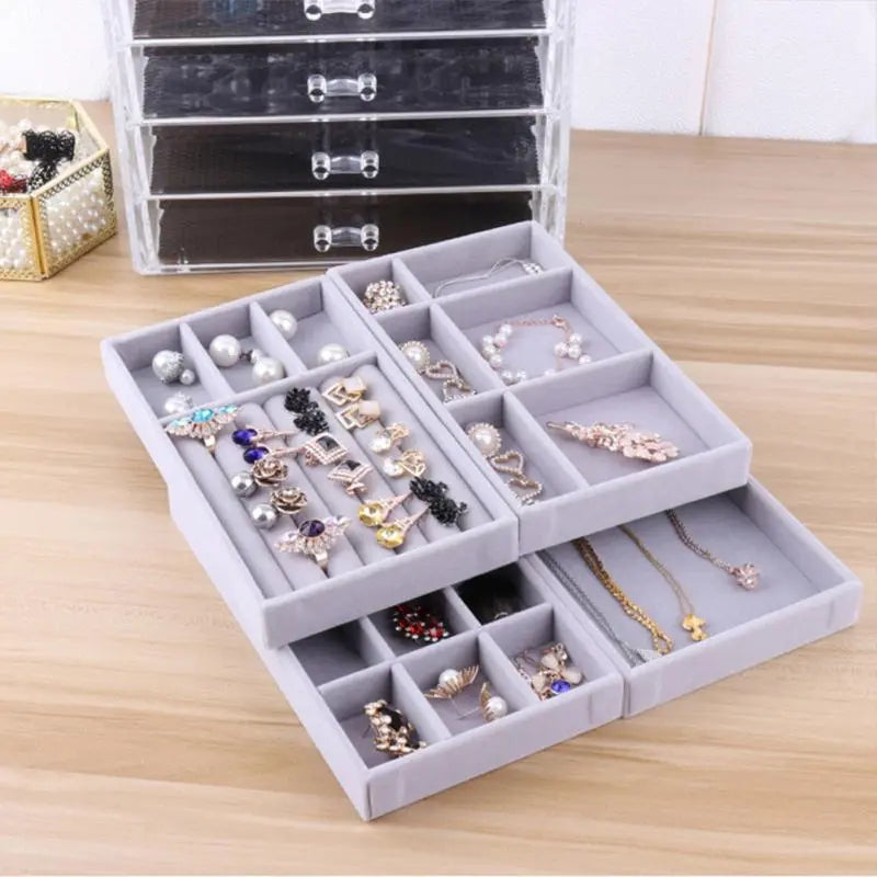 Soft Velvet Stackable Jewelry Tray Case Jewelry Display Storage Box Portable Ring Earrings Necklace Organizer Box Jewelry Holderspan style="font-family:'Times New Roman';font-size:16px">
