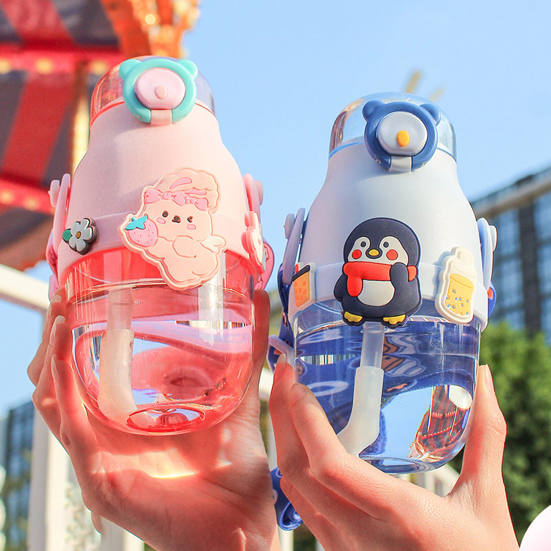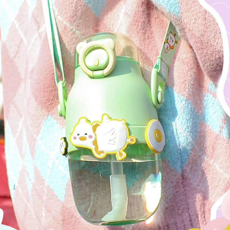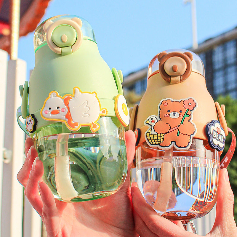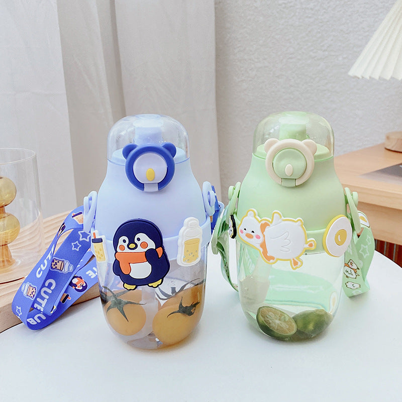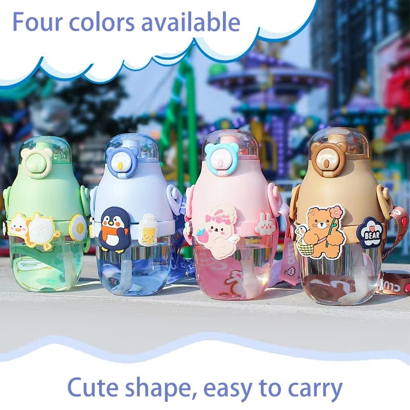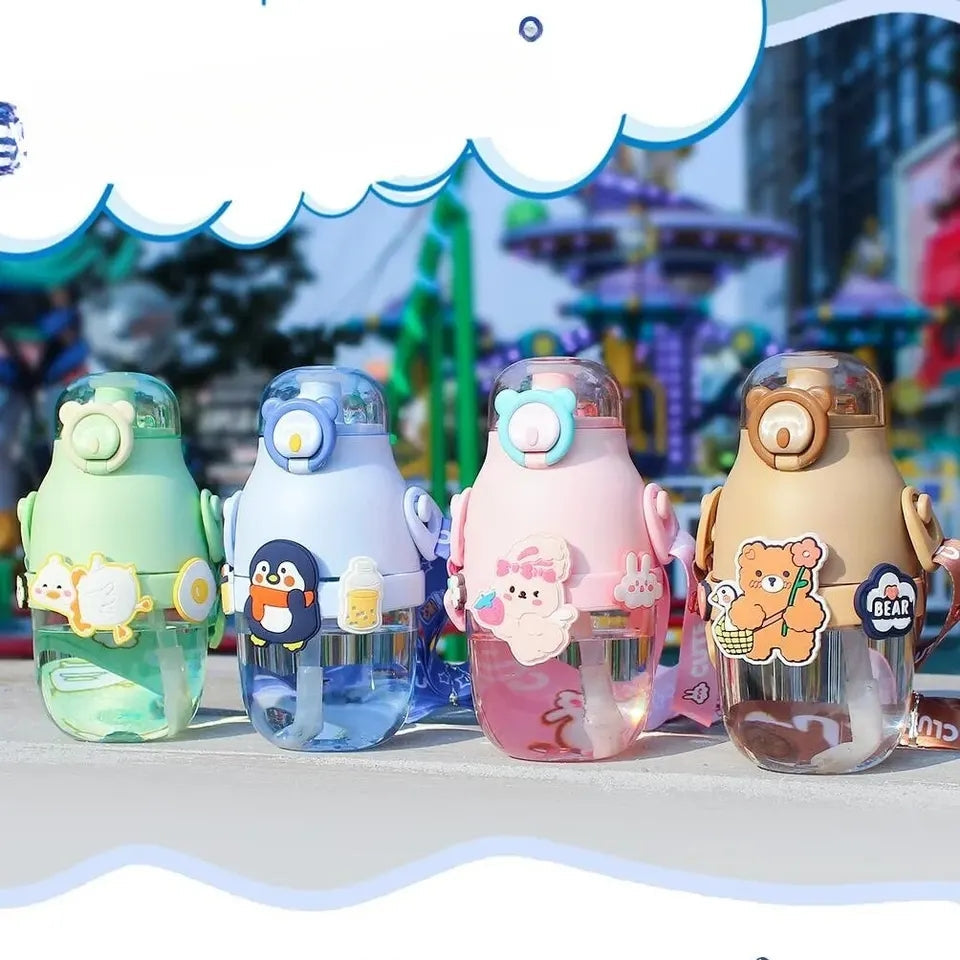 Animated Water Bottle, Summer Water Bottle For Kids, Cute Plastic Kid Water Cup, Water Bottle With Shoulder Strap, Cute Insulated Water Bottles, Portable Kid Drink Mug, Plastic Outdoor School Drink Water Cup, Cute Water Bottles