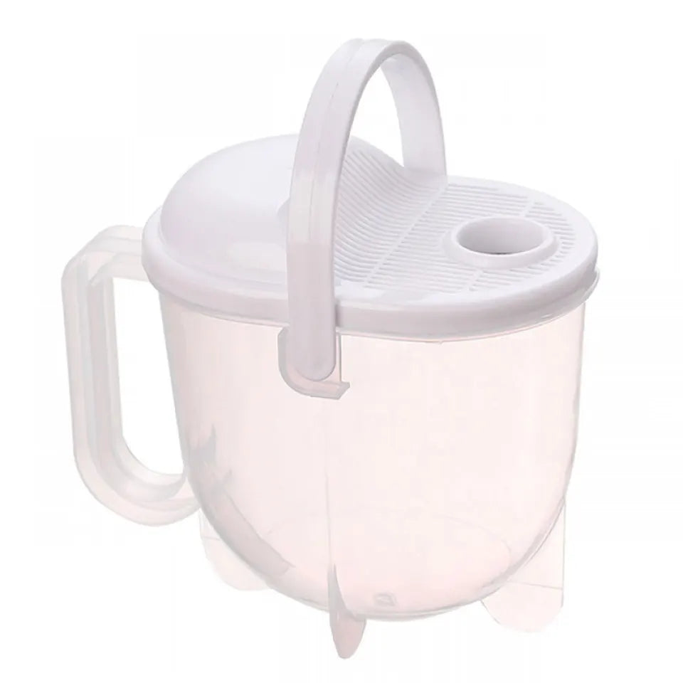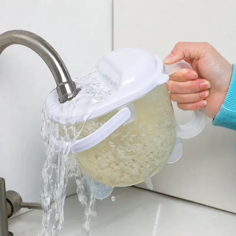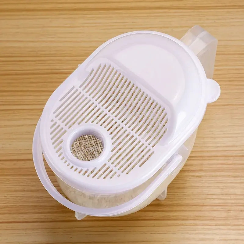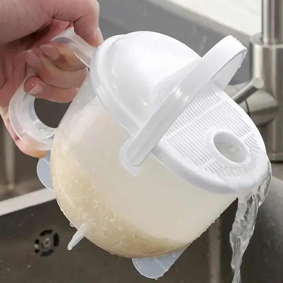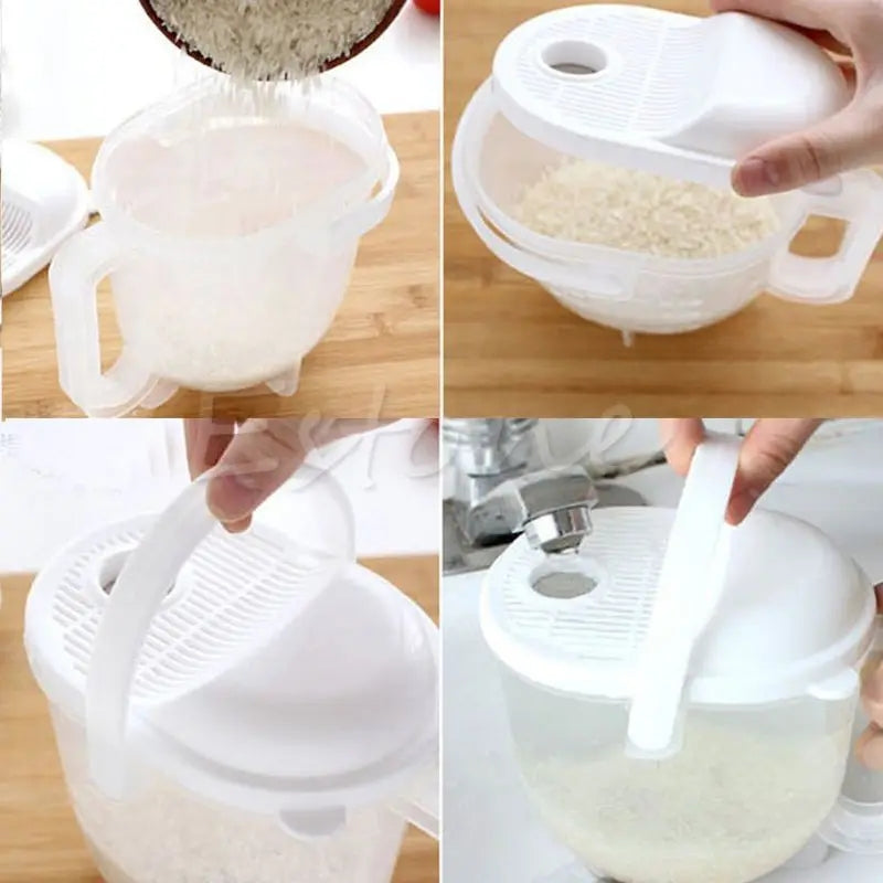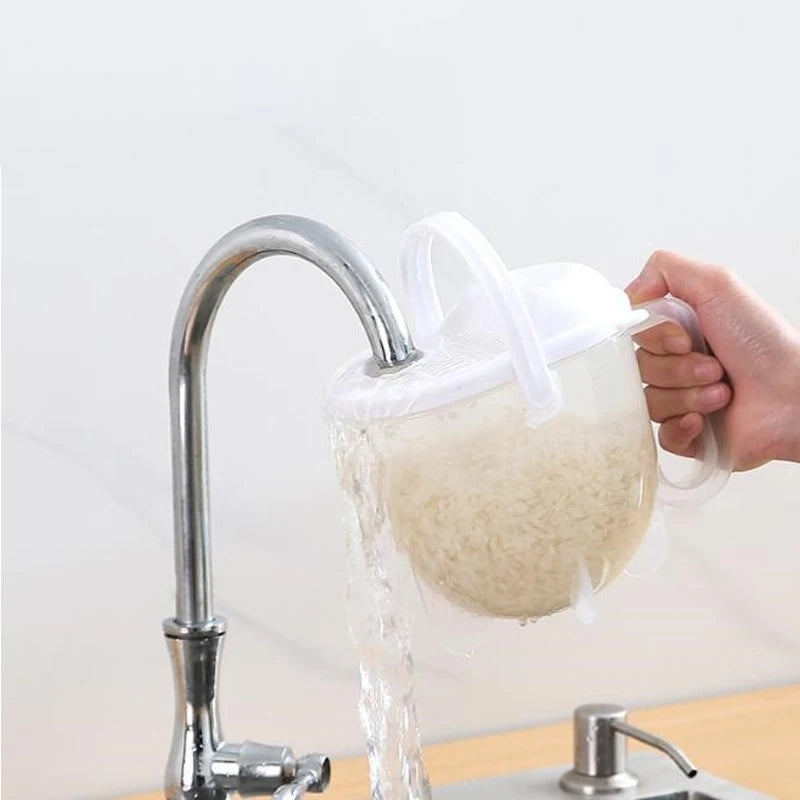 【Usage method】1. Pour rice into the container; 2. Place it under the faucet and aim at the water injection port; 3. The cleaned water overflows from the upper filter; 4. Turn over the rice washer and pour out the remaining water. Finish.