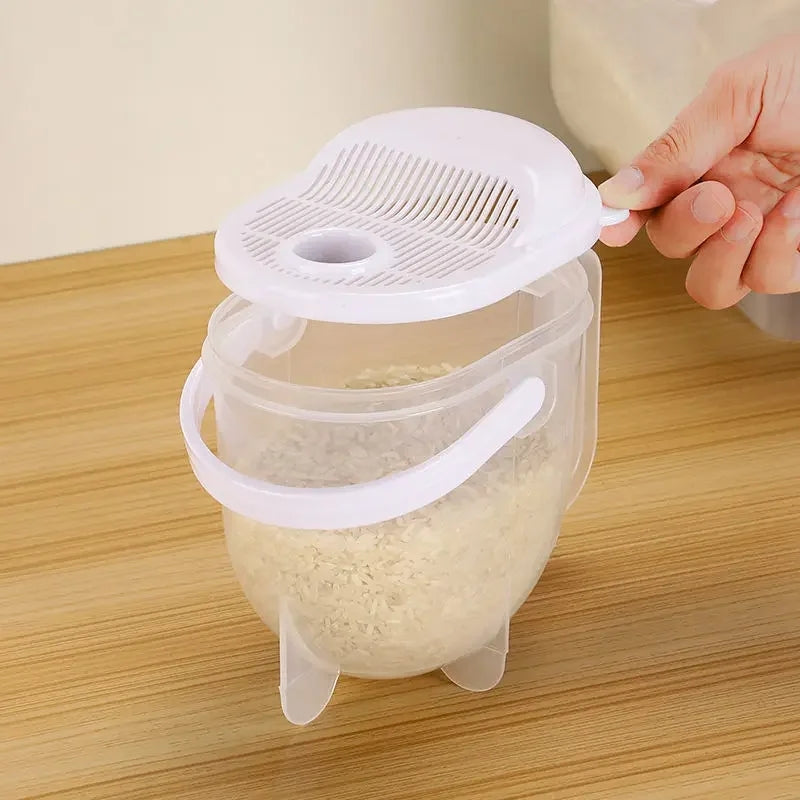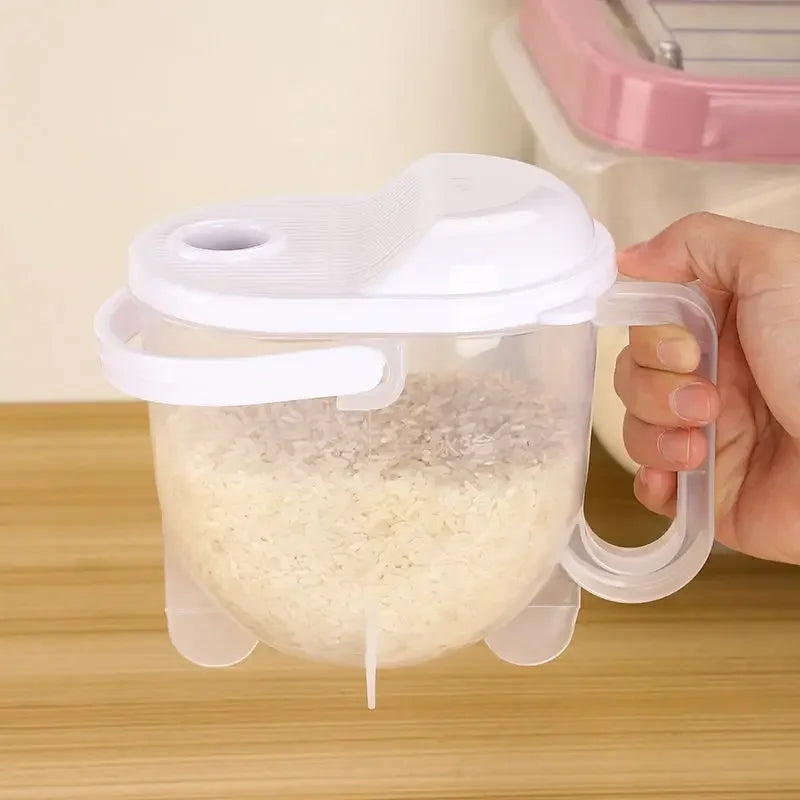 【Thickened PP material】ergonomically comfortable handle, easy to hold and move, non-slip bottom is stable, detachable outer cover, easy to pour rice, easy to use and effortless.