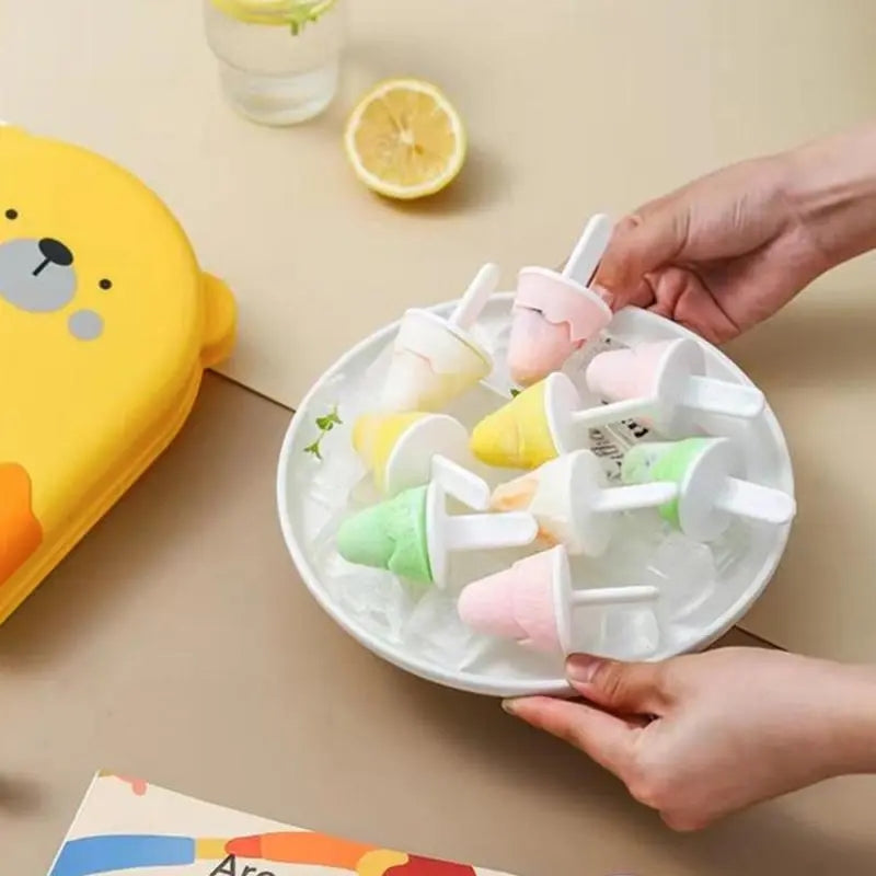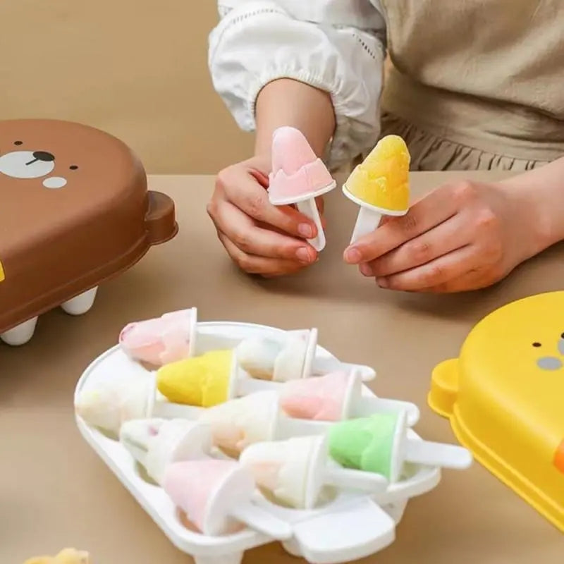 1-10PCS Cavities Cute Bear loe Cream Food Grade Mold with Lid Popsicle Maker Tray Molds Cheese Pudding Kitchen