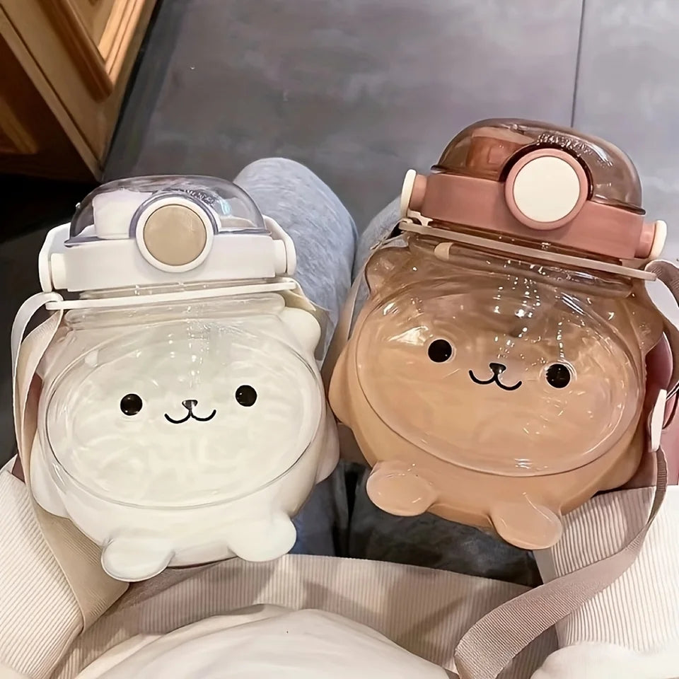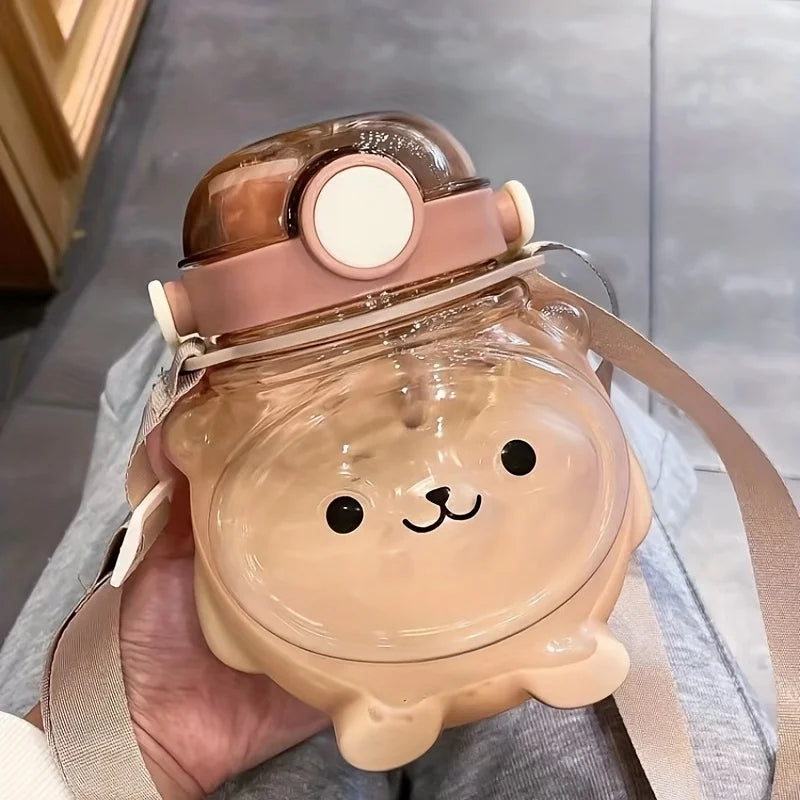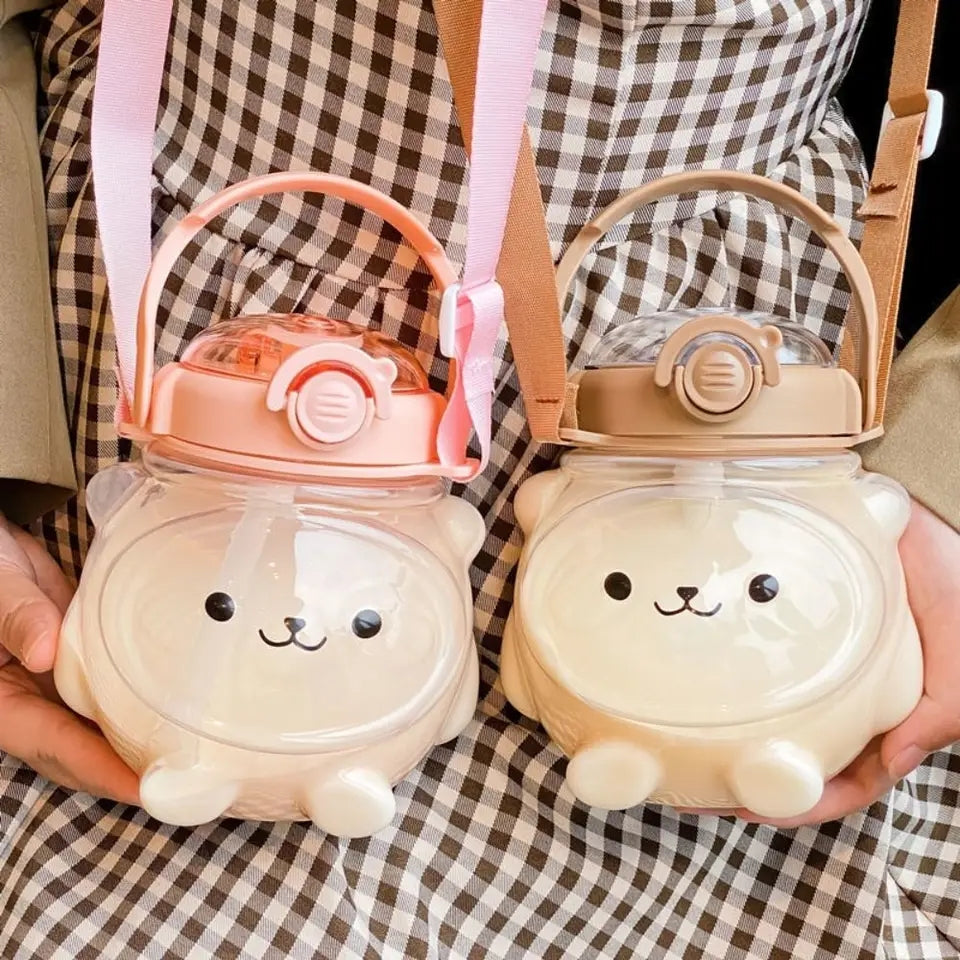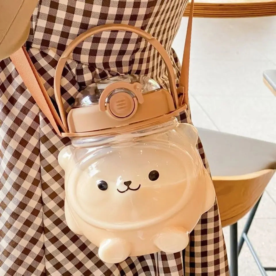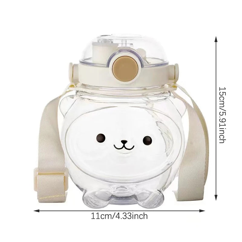 Cute Shape: Large water bottle is designed with a cute bear shape, with a shoulder strap, the bottle will be an attractive accessory when carried on your body.