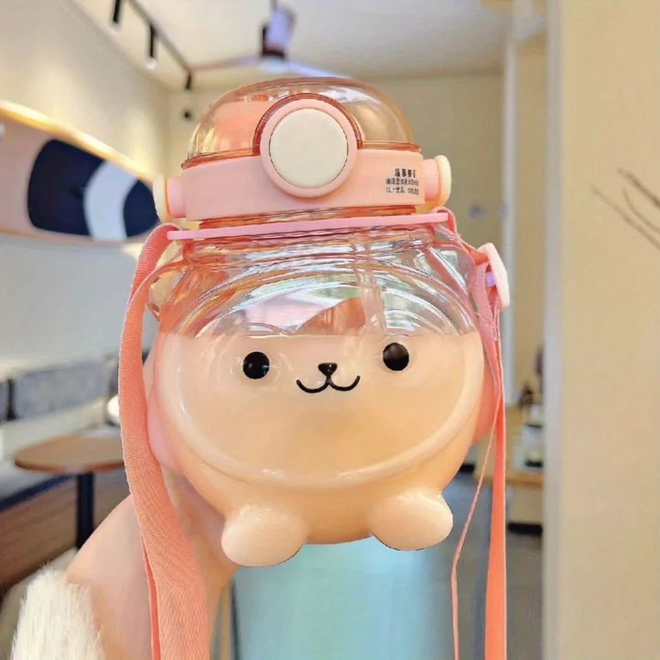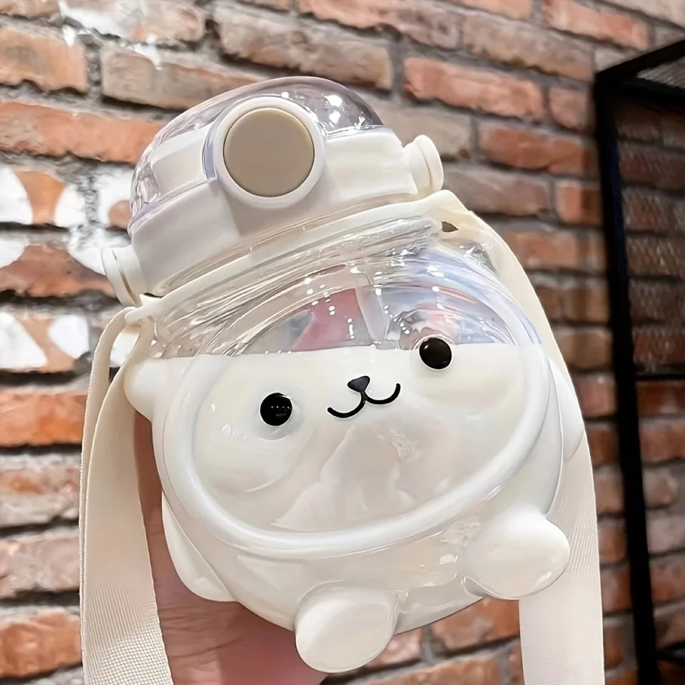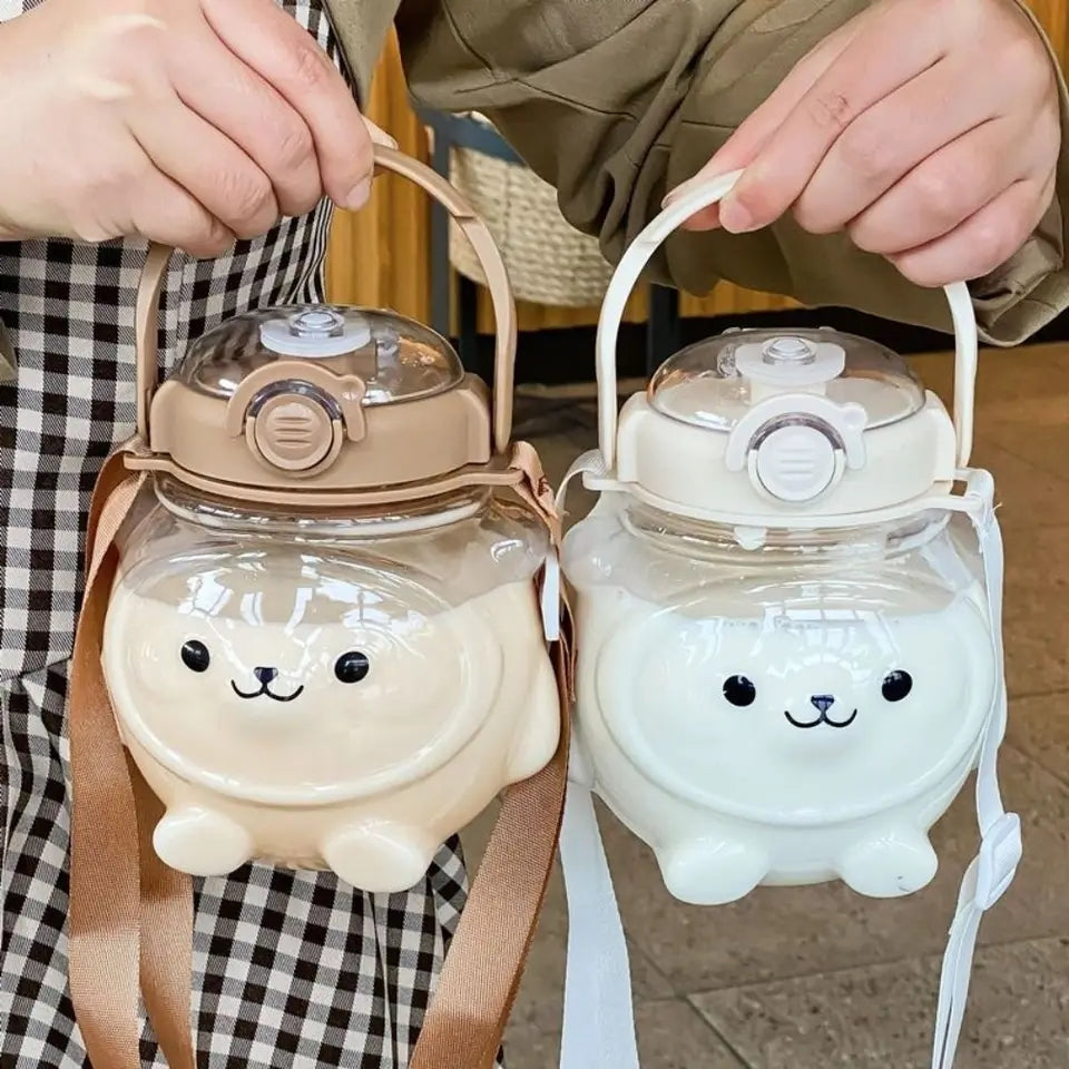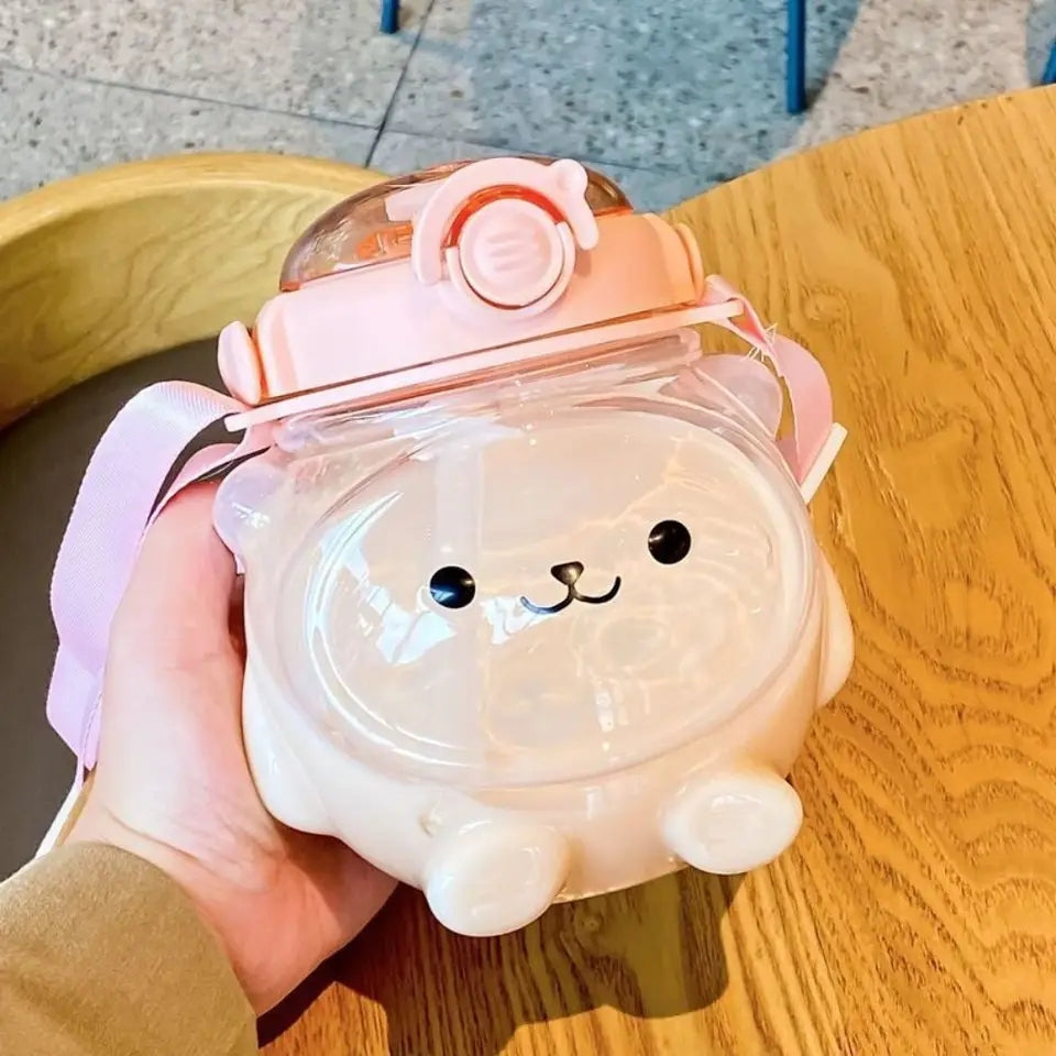 Cute Shape: Large water bottle is designed with a cute bear shape, with a shoulder strap, the bottle will be an attractive accessory when carried on your body.