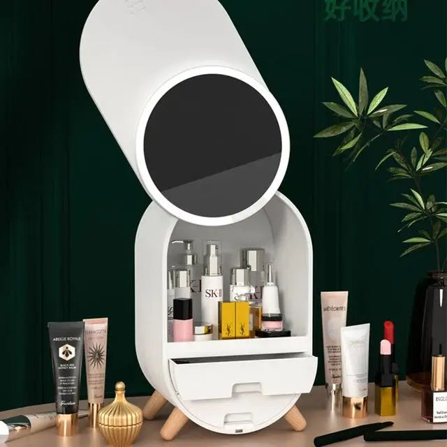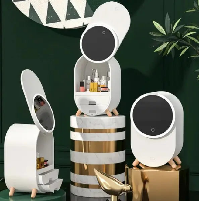 WITH MIRROR : This makeup organizer mirror with led lights allows you to perfectly polish your make-up in the dark or poorly lit areas.The mirror 360-degree swivel provides vertical rotation for optimum angle viewing