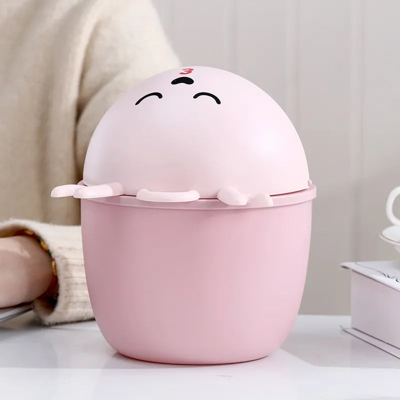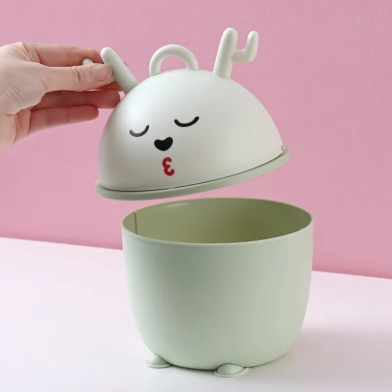 Desktop trash can, high quality ABS and PP material. Stay cute cartoon shape, storage and decoration dual-use, placed on the table, small size does not occupy space, suitable for storing peel paper scraps. Snacks such as snack husks.