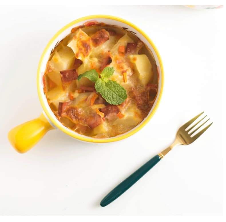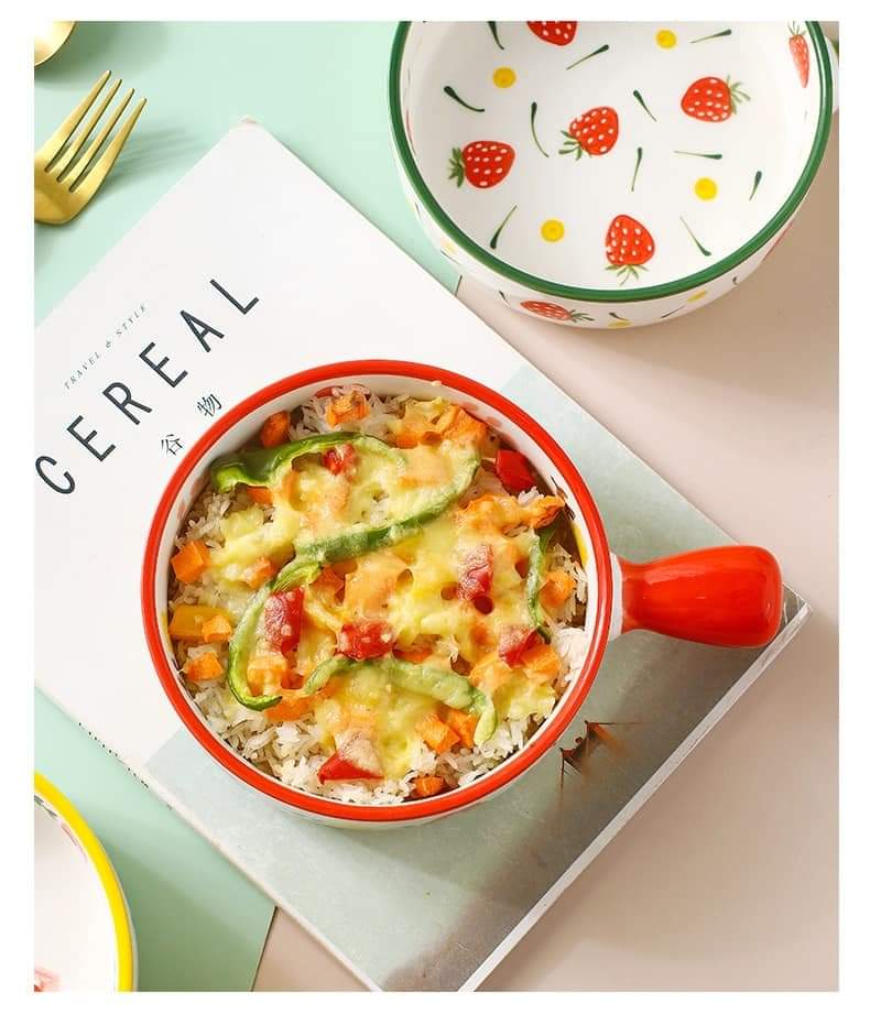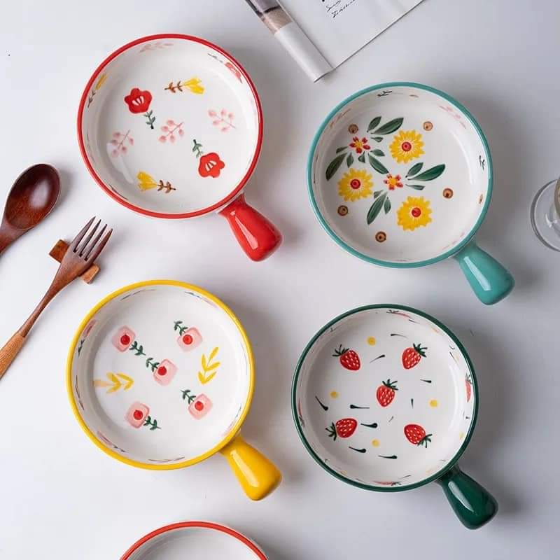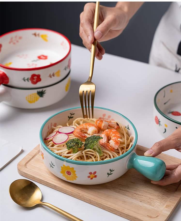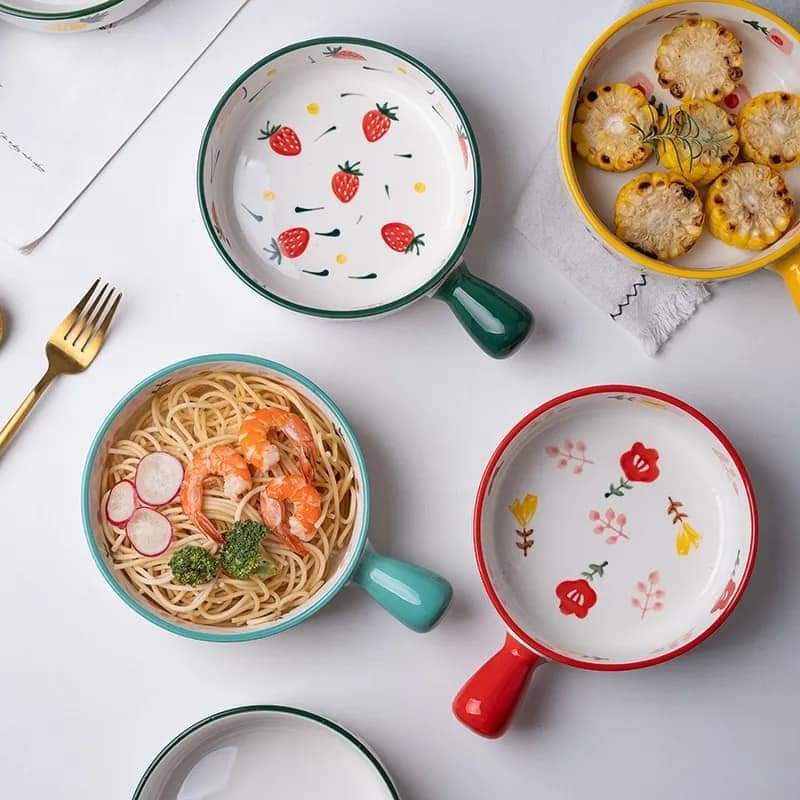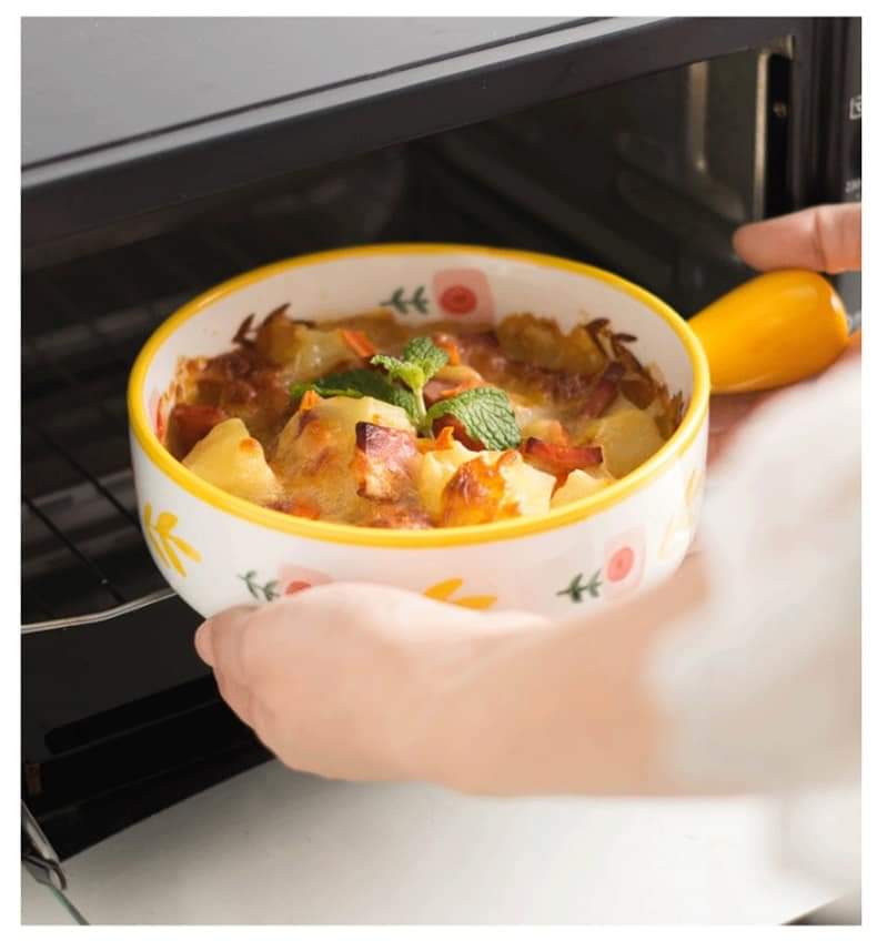.The unique handle design prevents burns during cooking, and multi-purpose plate can be used as a baking tray, noodle bowl, salad bowl.