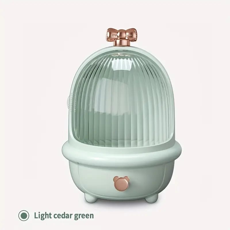 Practical : This dustproof cosmetic organizer is elegant to effortlessly meet any room decor, you could place it in your bedroom, bathroom, dressing room, bedside table, vanity countertop. White main body with transparent cover, modern and simple, stylish and convenience.In In addition to white, there are also pink and green to choose from, all of which are spring colors.