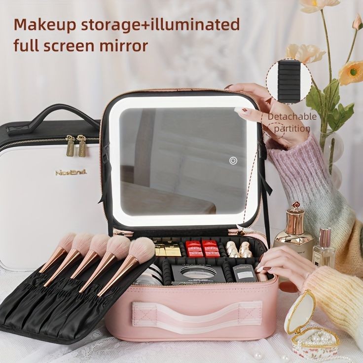 【Game-Changing Portable Dresser】Large capacity cosmetic storage compartment, large makeup brush storage board, perfect lighting guarantee- thanks to an advanced luminous system which designed with3 lighting environments, giving you the freedom to do your make-up comfortably anywhere. The innovation of this cosmetic case doesn't stop there: a single charge will last around one week.