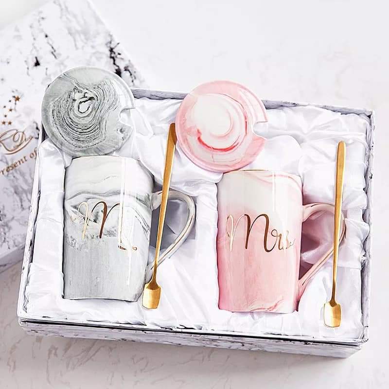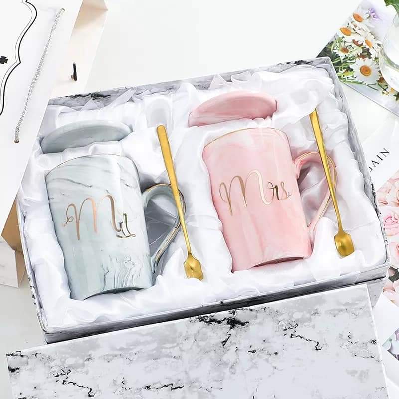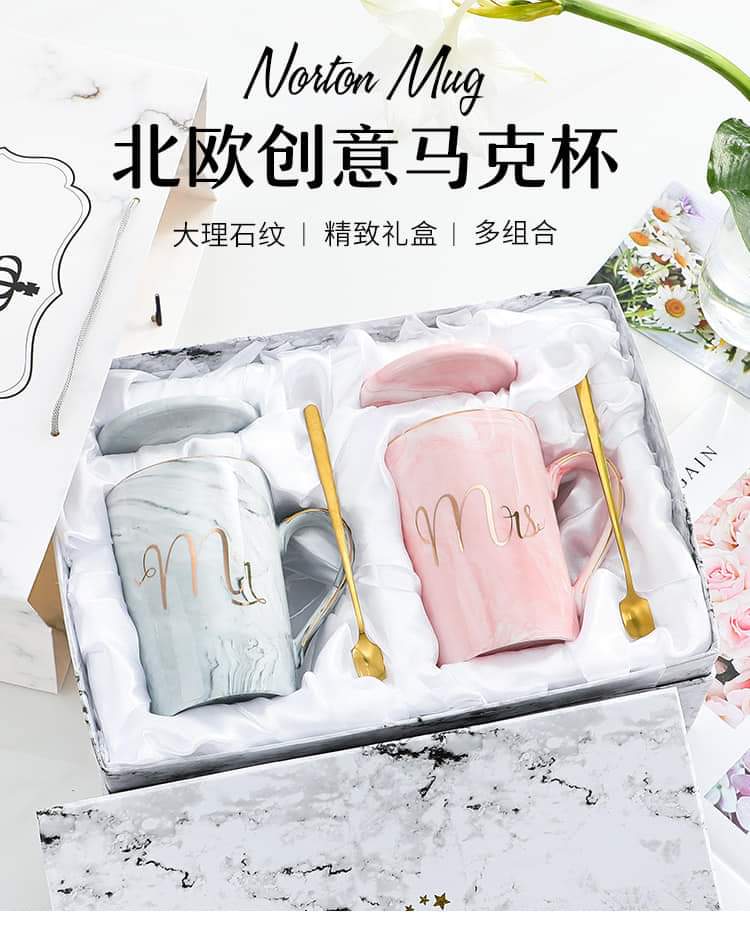 Luxury Ceramic Marble Coffee Mugs Morning Milk and Tea Porcelain Cup Packed With Gift Box Present for Lover Wedding Couples