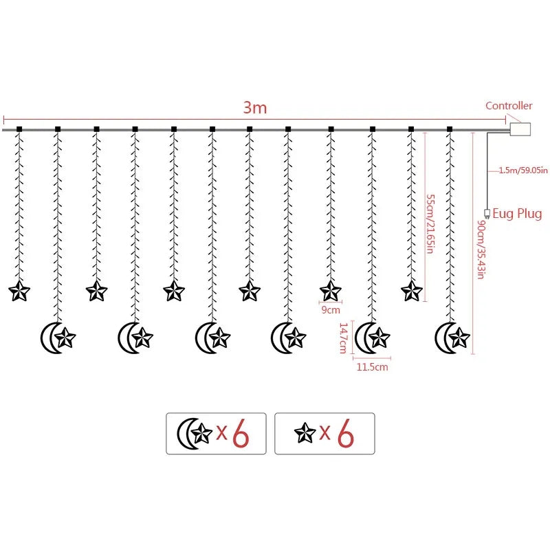 Star & Moon Curtain Lights 10ft curtain light—room decoration curtain light with star and moonlight.
