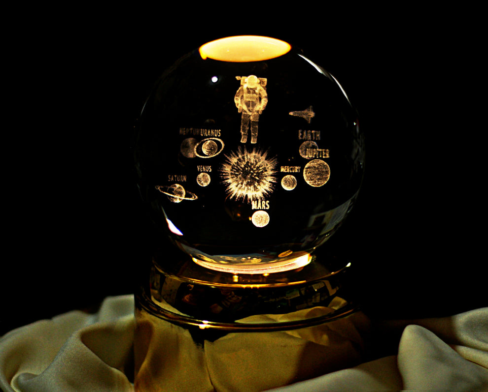 Rotating Designs: A detailed designs inside the crystal ball rotates smoothly, creating a mesmerizing visual effect.