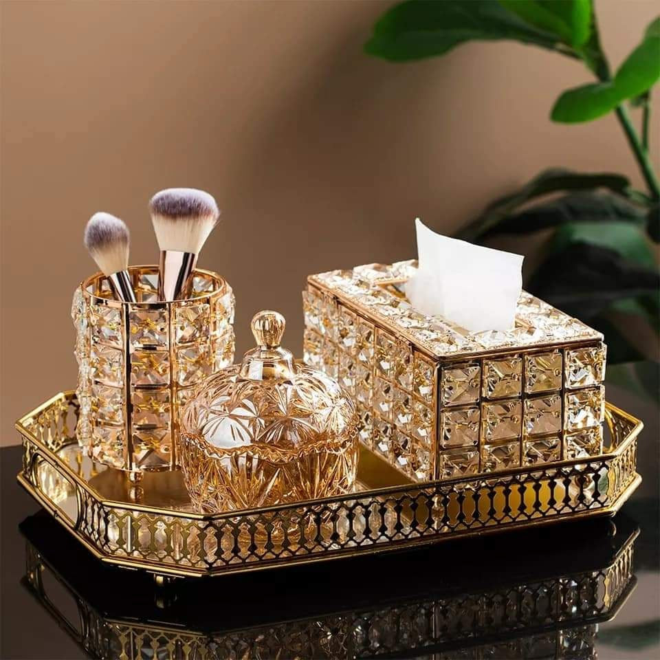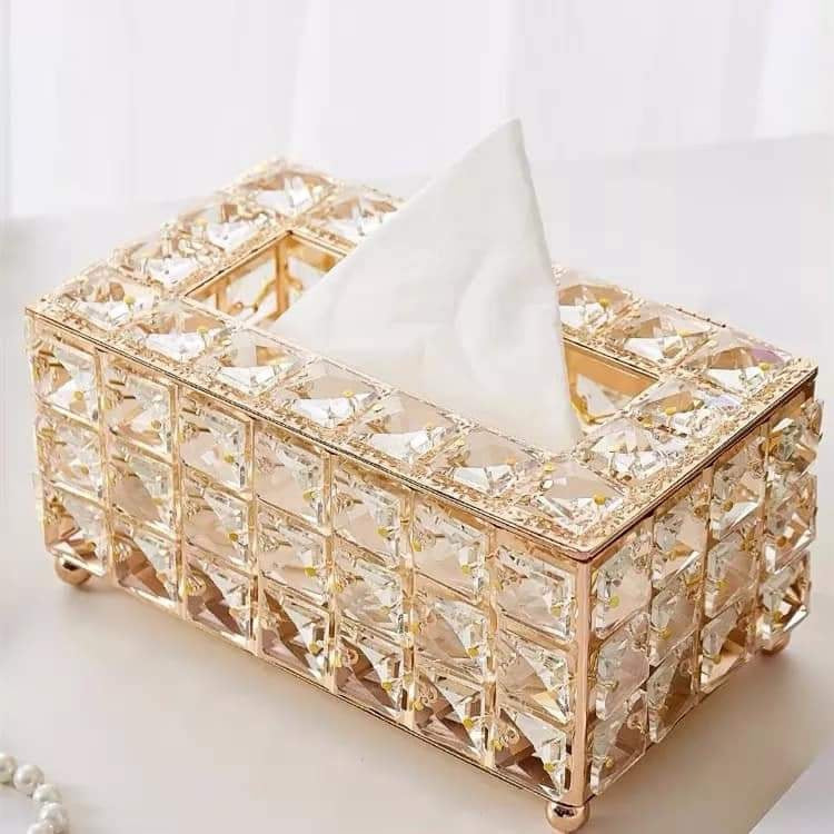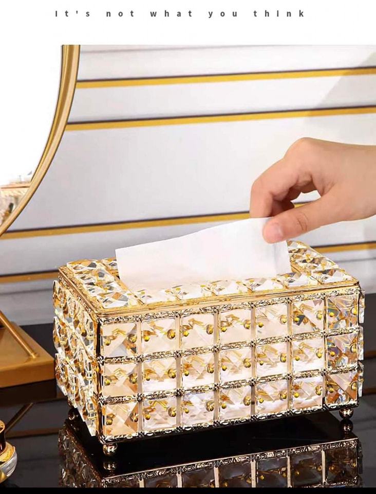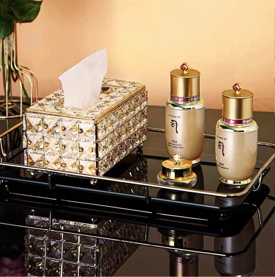 High quality material: the tissue box cover is made of metal and octagonal crystals, and each crystal on the makeup brush holder is hand-laid, so the connection is firm and not easy to fall off. Fashionable appearance: the combination of golden metal and crystals makes the tissue box holder a beautiful decoration for your dressing Versatile: Can be used as a tissue box or decoration for home, office, kitchen, bathroom,