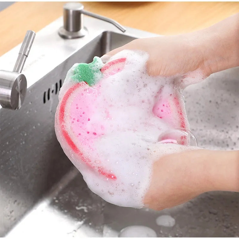 Dishwashing Sponge Kitchen Supplies Tools Cute Fruit Shape Clean Stains