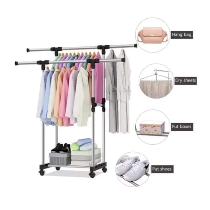 double pole floor standing adjustable balcony folding stainless steel holder drying retractable simple coat holder rack it comes into pieces you need to assemble it box packing