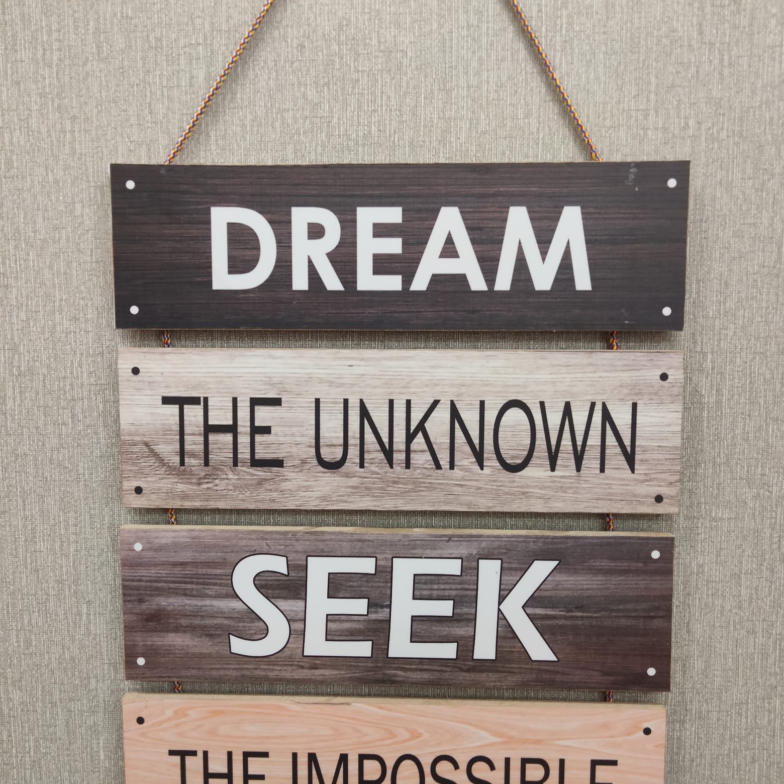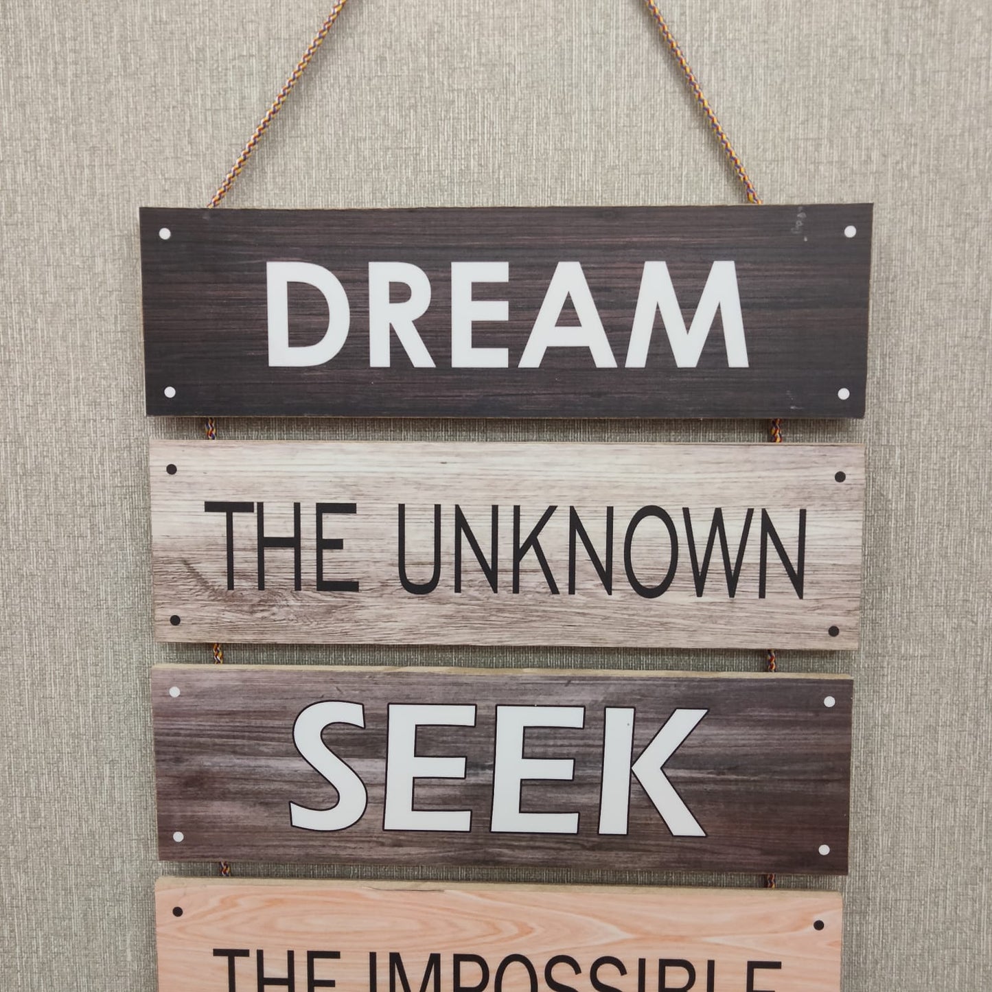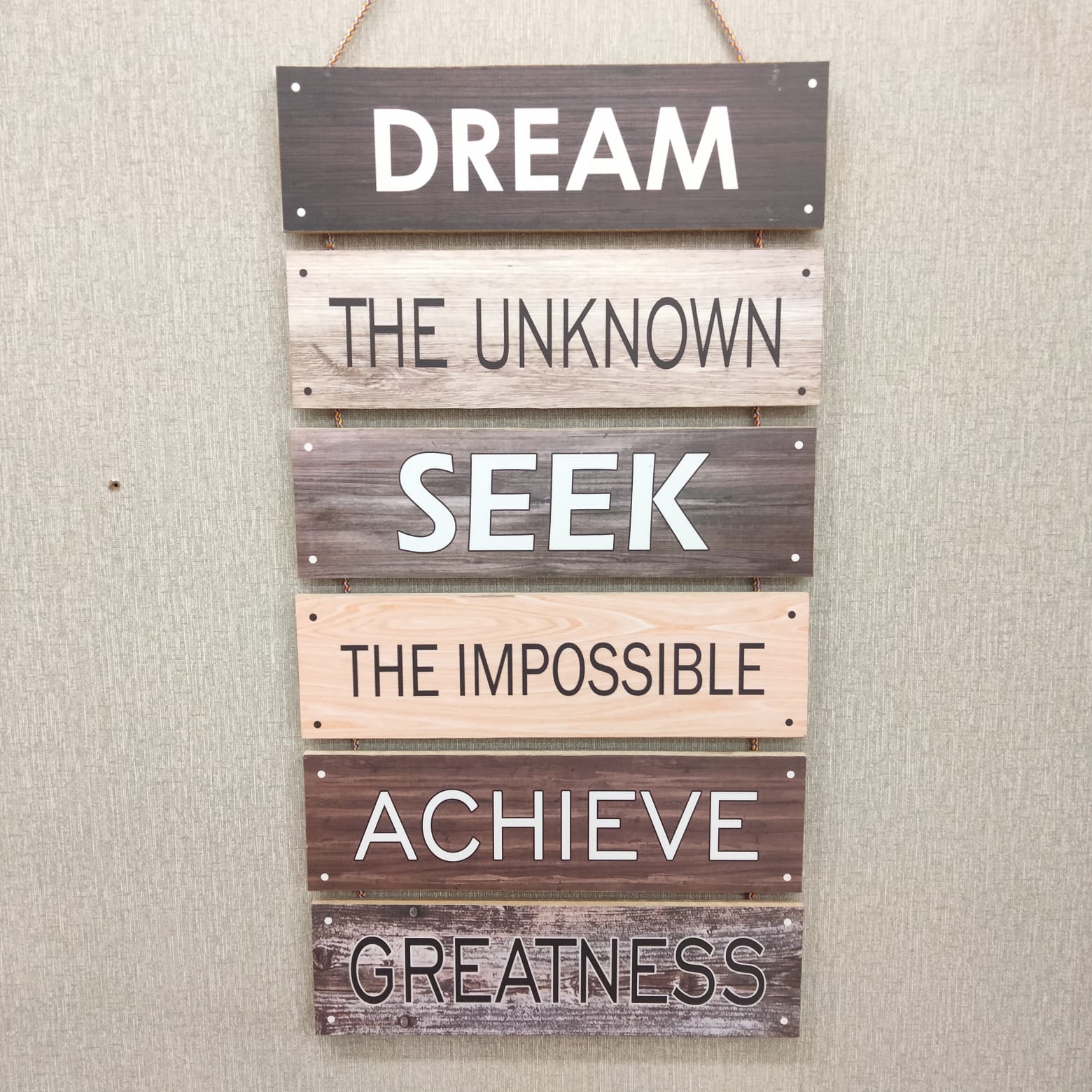 Unlock your full potential with our Dream Big Motivational wall hanging. This stylish wall decoration features inspiring quotes to keep you motivated and focused on achieving your goals. Don't settle for mediocrity, aim higher and reach for the stars with our beautiful wall hanging.