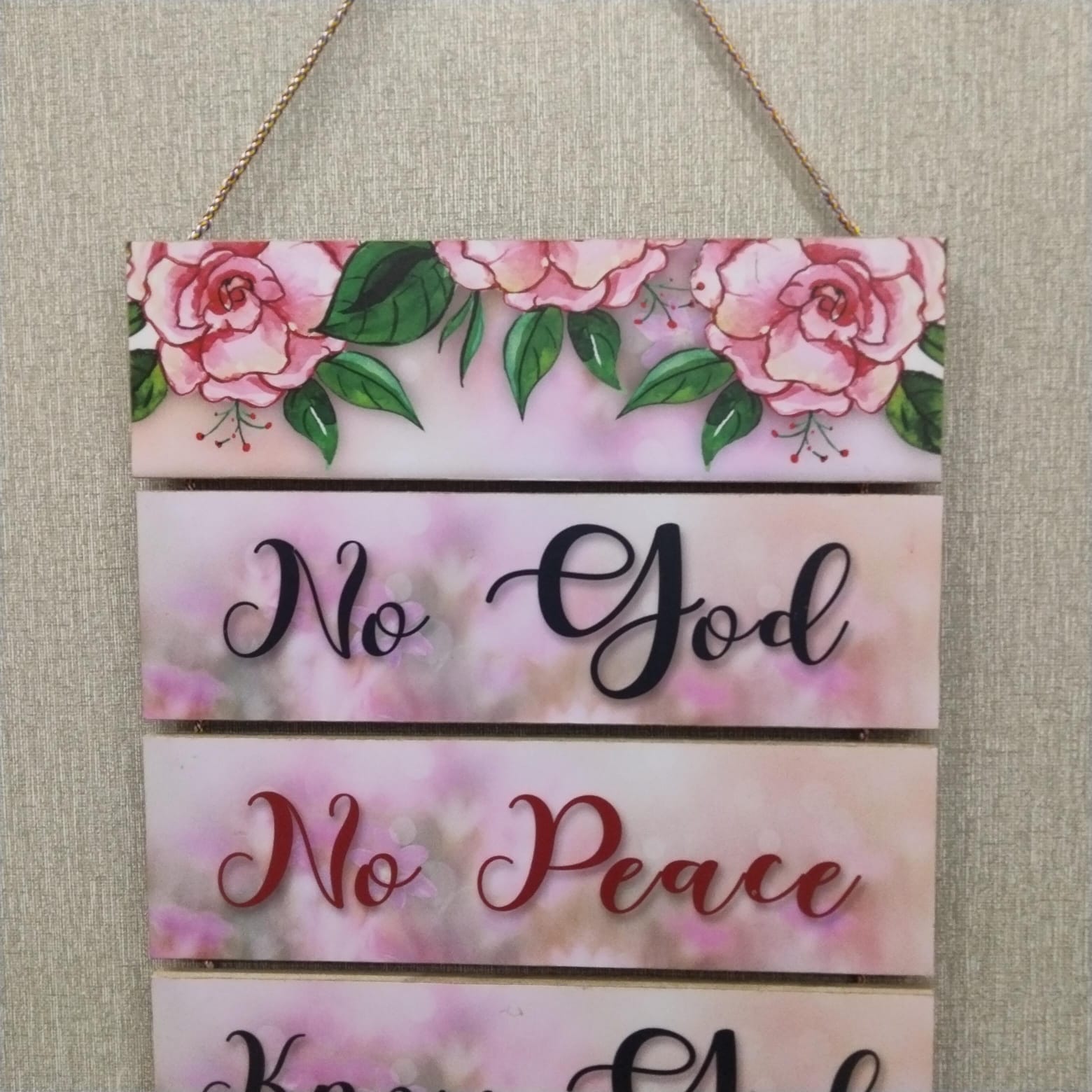 This handcrafted wooden hanging features the phrase "Faith in God" and serves as a beautiful wall decoration. Made from high-quality materials, it adds a unique touch to any space while reminding you of the importance of faith. Display it proudly to inspire yourself and others.