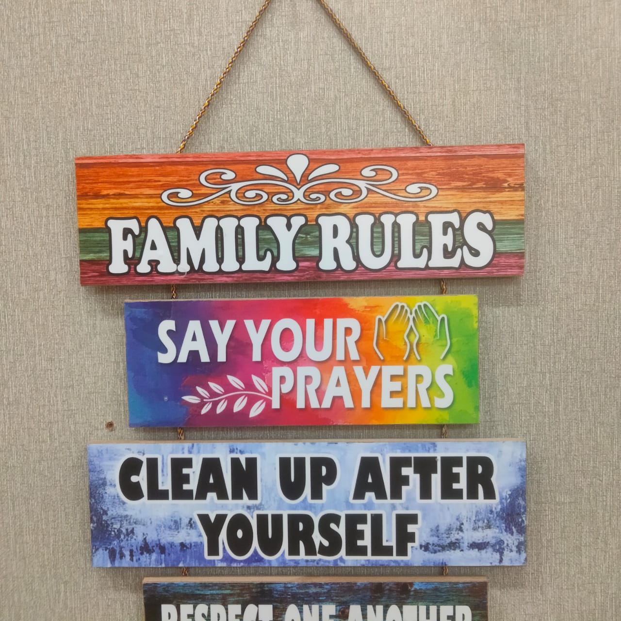 This wall decoration features 5 steps for creating a harmonious and loving family environment. Display these words of wisdom in your home to remind and inspire your family members. Promote positive values and strengthen familial relationships. A must-have for any household.