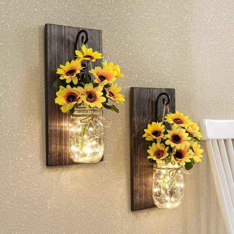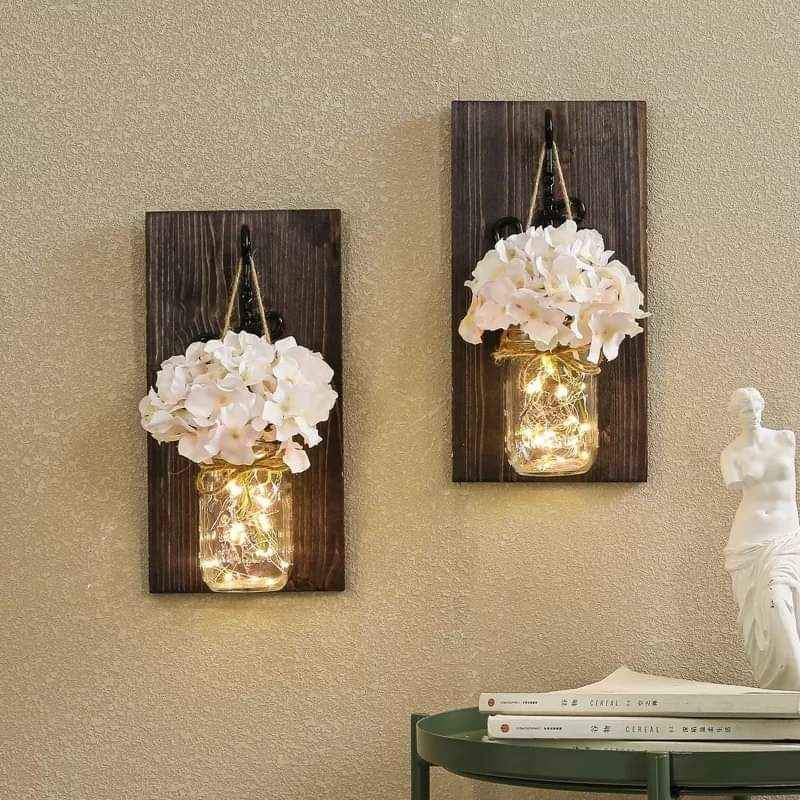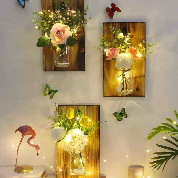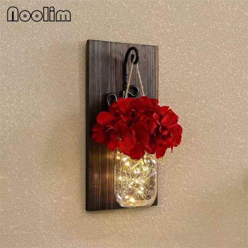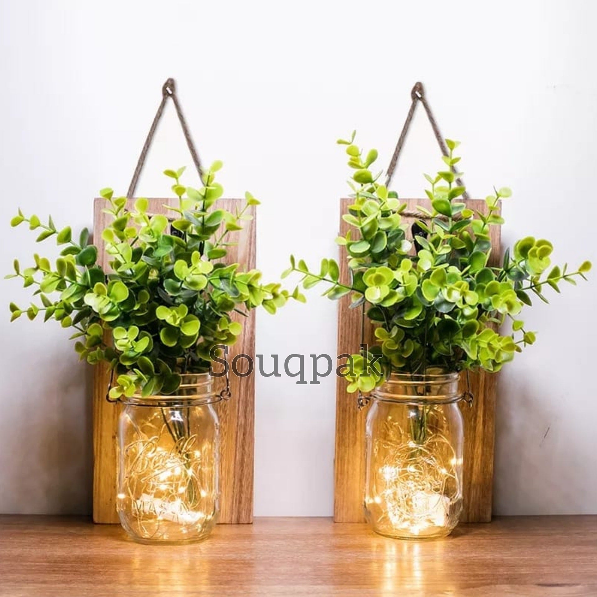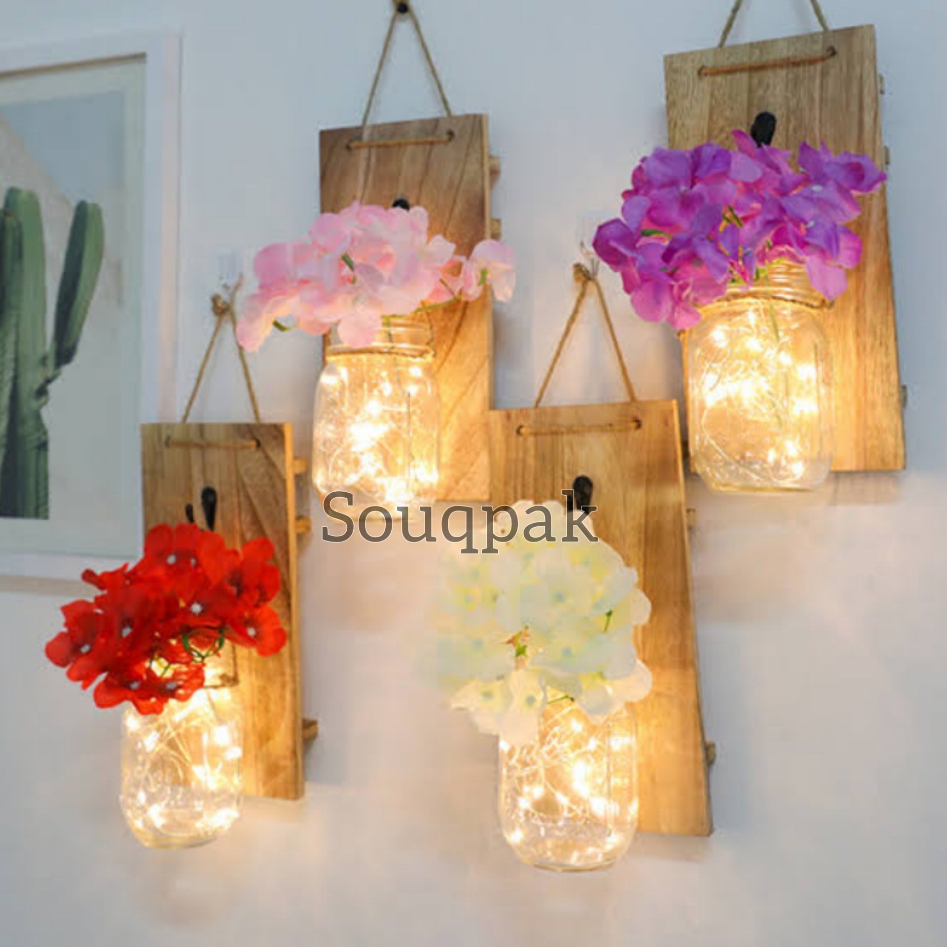 Flower Garland Jar home decoration flower led jar with wooden hanging. Home decoration flower arrangements are available online All over Pakistan.
