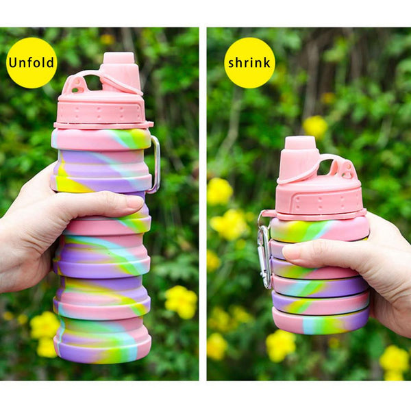 500Ml Portable Retractable Silicone Bottle Folding Water Bottle Outdoor Travel Drinking Cup with Carabiner Foldable Cup Hot