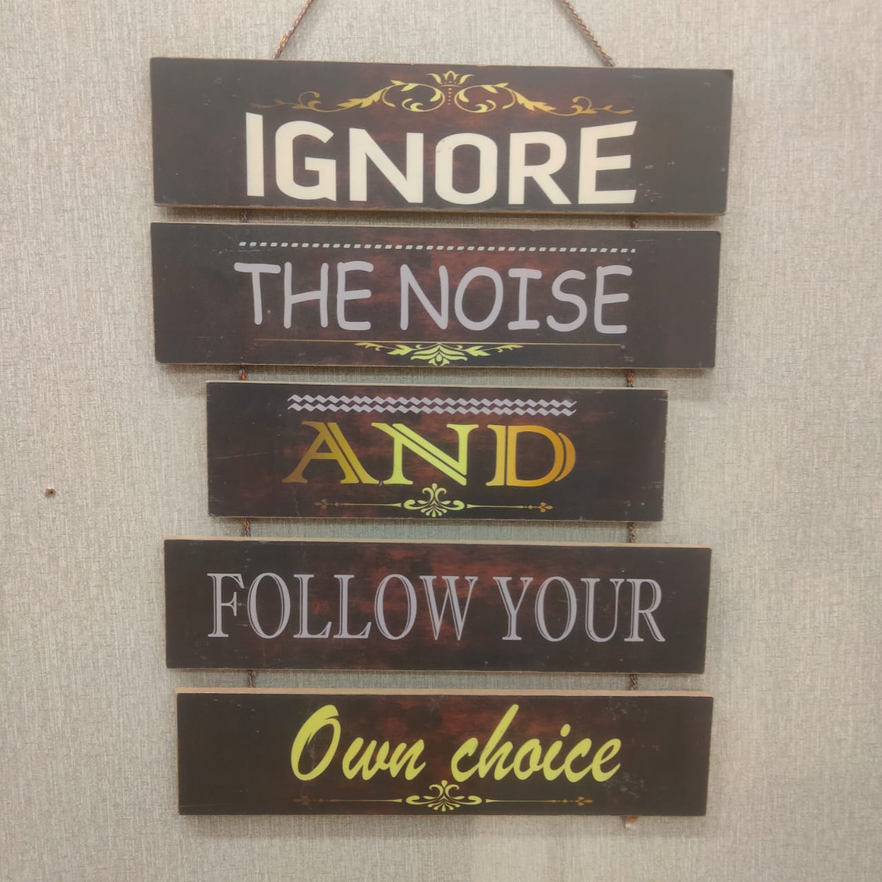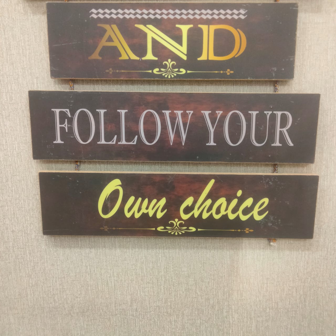 Elevate your home decor with Follow your own choice - wall decoration quotes. With inspiring and thought-provoking quotes, this wall art allows you to express your individuality and personal style. Made with high-quality materials, these quotes add a touch of elegance and sophistication to any room.