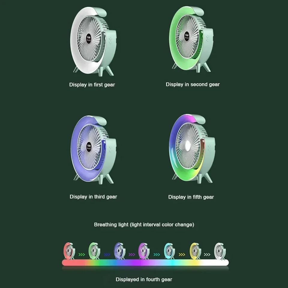 【3 Speeds】USB Desk Fan with 3 wind speeds and 5 lighting modes, satisfying your different needs.