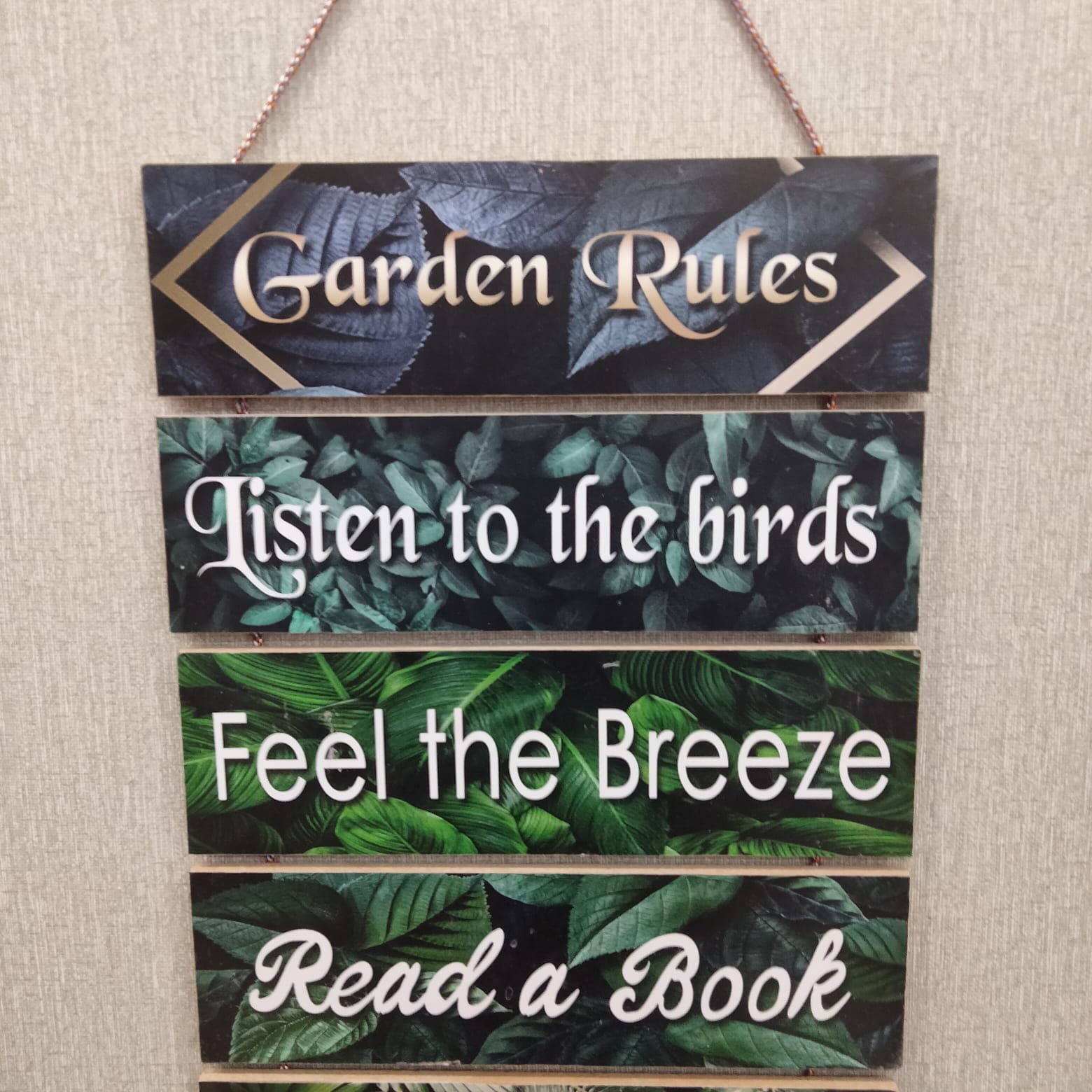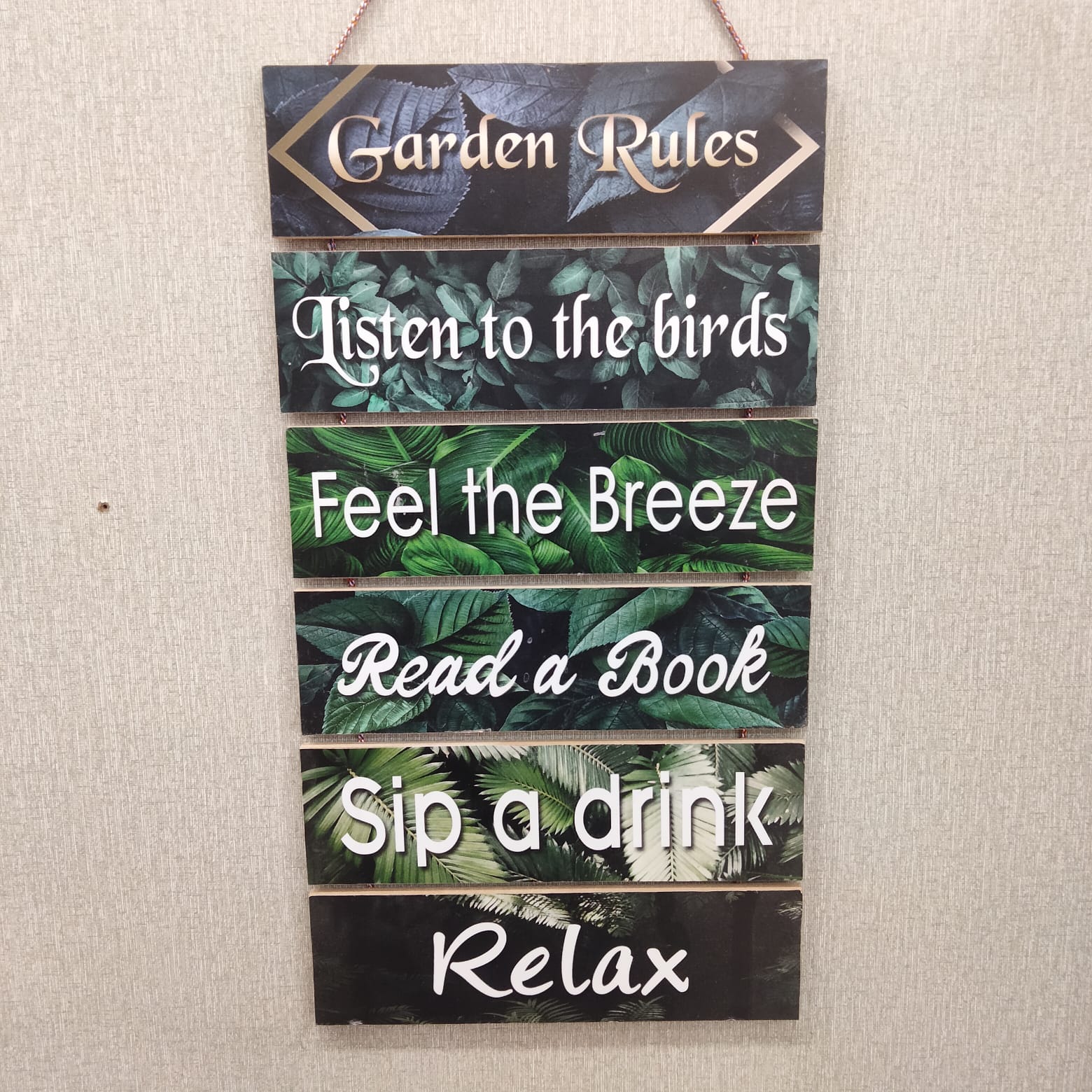 This Garden Rule wall decoration hanging features inspiring quotes to bring life to any garden. Made from durable materials, it is a perfect addition to any outdoor space. Show your love and respect for nature with this unique decor piece.