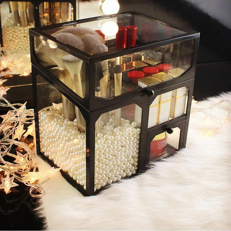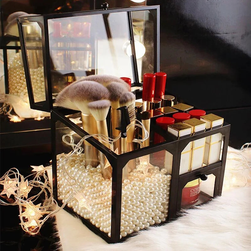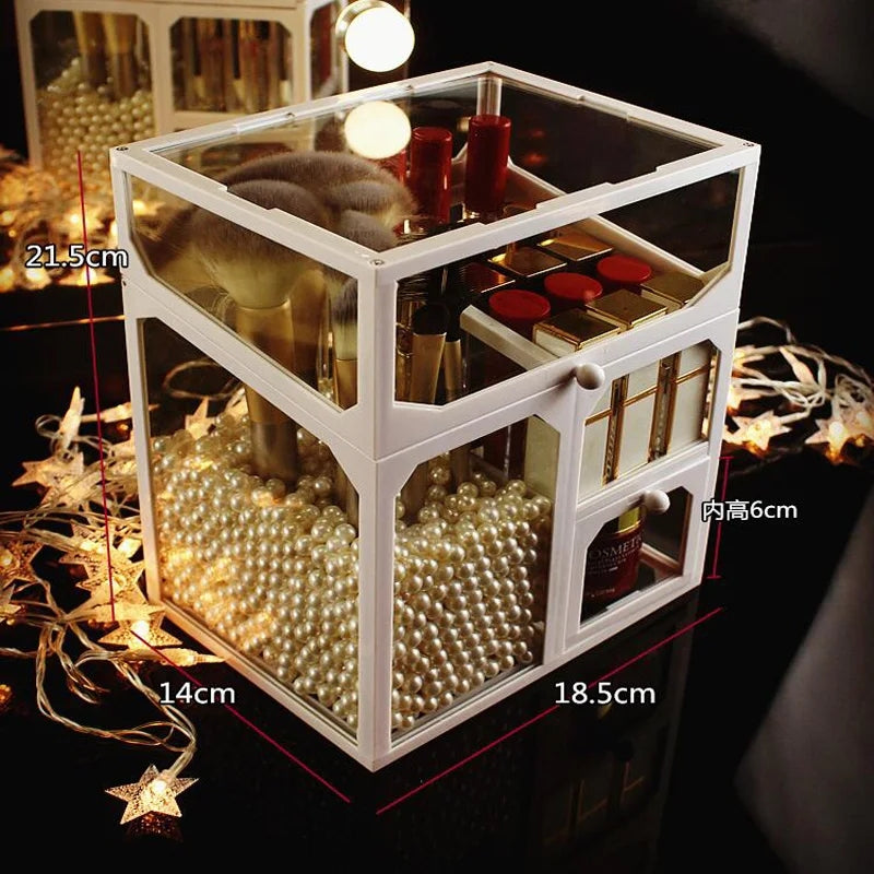 Dust Proof : hinged lid prevents dust particles from entering, keeping makeup clean at all time. This Cosmetic Storage Box can make your dresser clean.