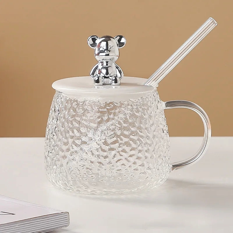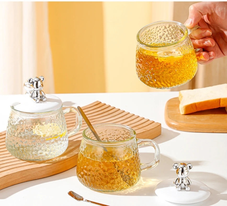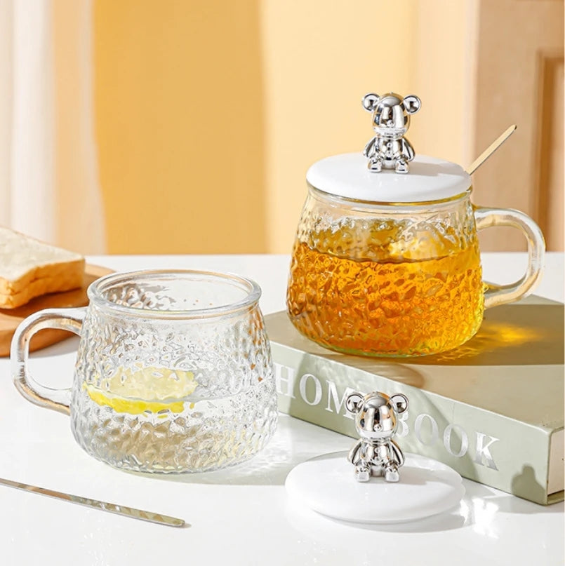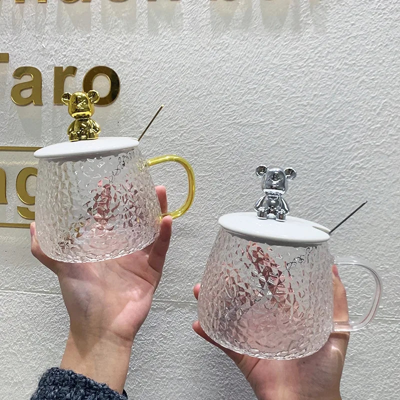 Net Red Bear Mugs Afternoon Tea Office Household Heat-Resistant Water Bottles Glass Cup Coffee Cup Milk Cup With Spoon