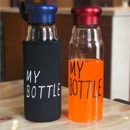 Glass Water Bottle With Aluminum Cap & My Bottle Black Pouch, 750ml Capacity
