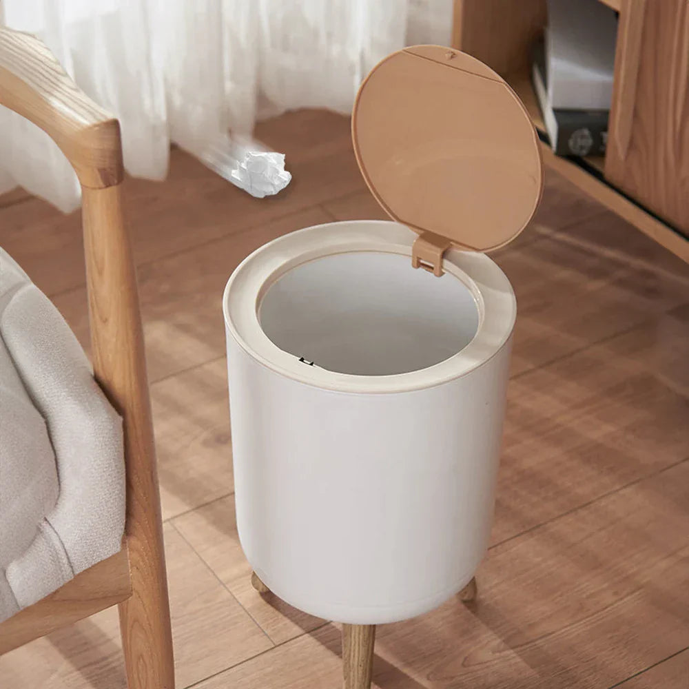 Add a touch of natural elegance to your space with this wooden pattern trash can, a creative and functional waste bin designed for the kitchen, living room, bathroom, or toilet. Featuring a realistic wood grain finish, it seamlessly blends with any decor while offering the durability of modern materials. The convenient press cover ensures hygienic, hands-free operation, keeping odors contained and your space tidy. With its compact yet spacious design, this imitation wood garbage bucket is perfect for daily waste disposal, combining style and practicality for any room in your home.