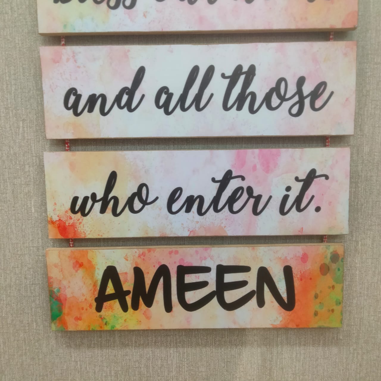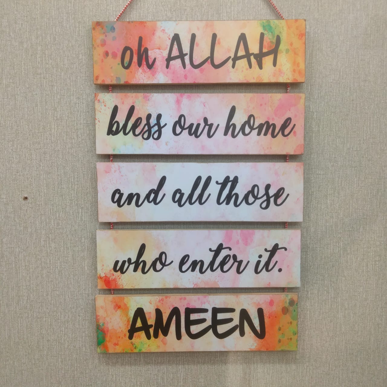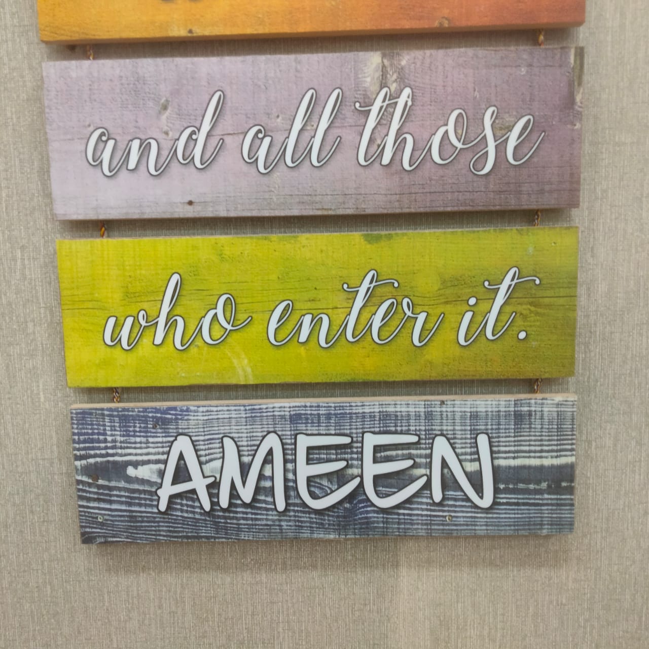 Enhance the welcoming atmosphere of your home with our Home Entrance Dua - Wall Decoration Quotes. Displaying the beautiful and meaningful dua on your wall not only adds a touch of elegance, but also serves as a reminder to always seek blessings and protection for your household. Made with high-quality material, this decorative piece is a must-have for any home.