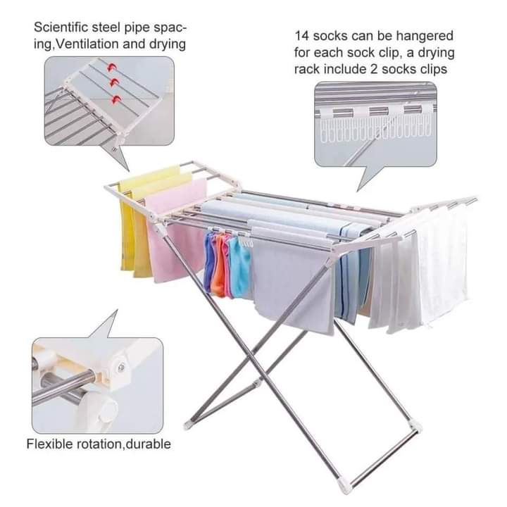 Indoor Balcony Folding Clothes Drying Rack Protable Laundry Dryer Hanger Shelf with Socks Clips Households.