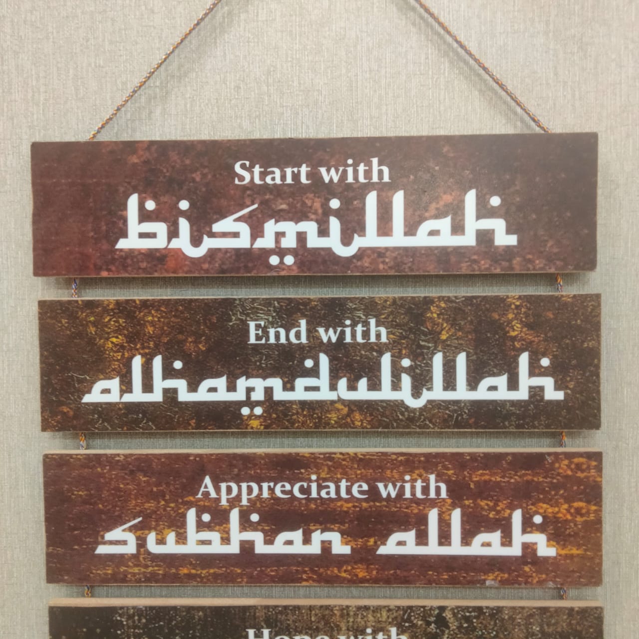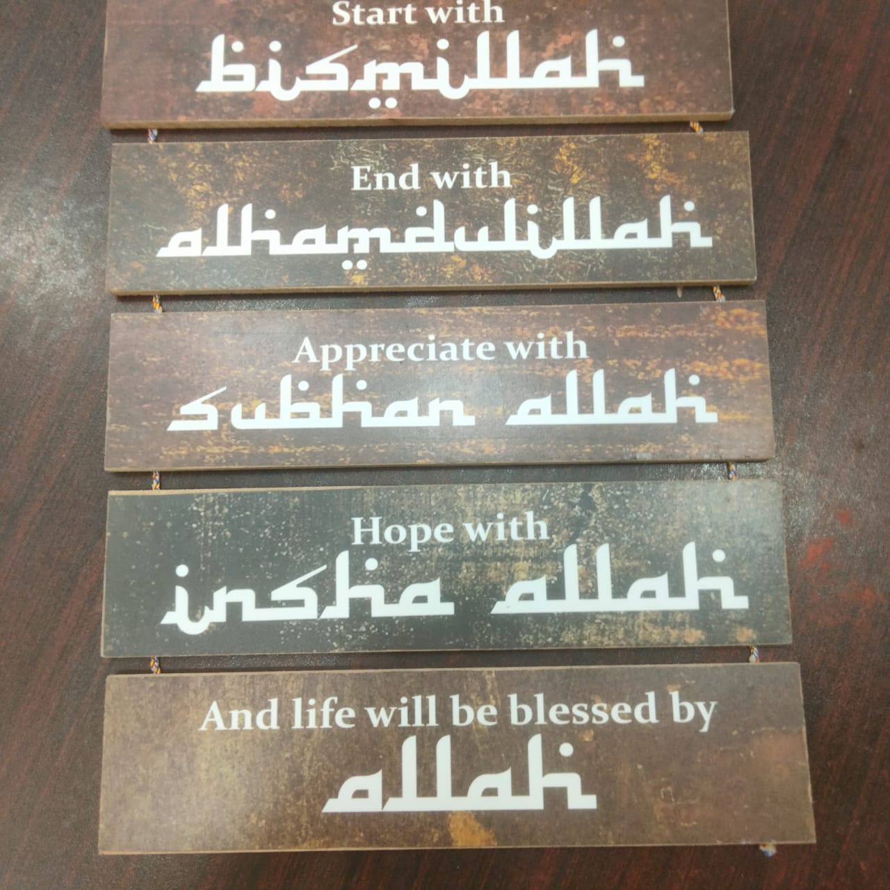 Enhance your home decor with our Islamic 5-Step hanging wall decoration quotes! This unique piece adds a touch of elegance and spirituality to any room. Crafted with high-quality materials, these quotes serve as a reminder of faith and inspiration. Elevate your space and create a peaceful and meaningful atmosphere.