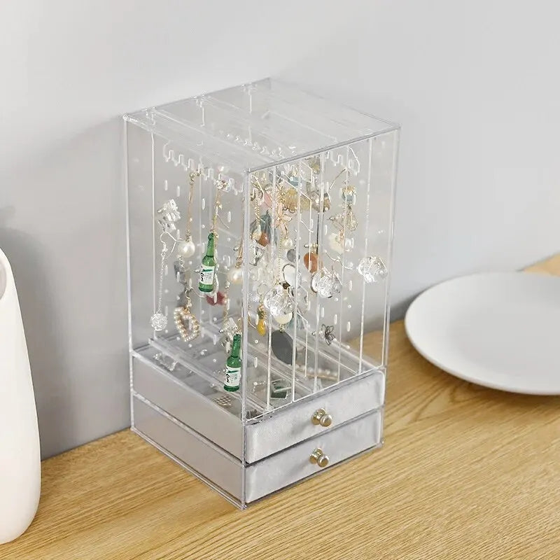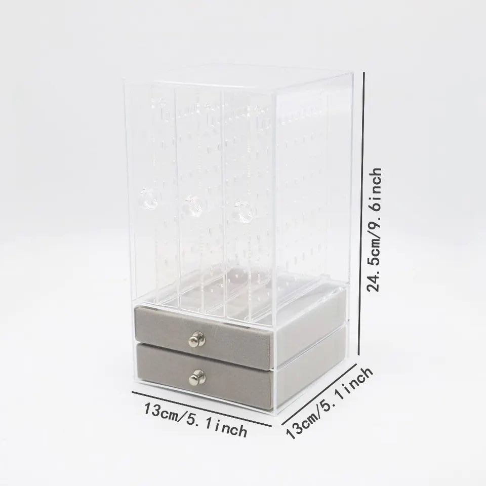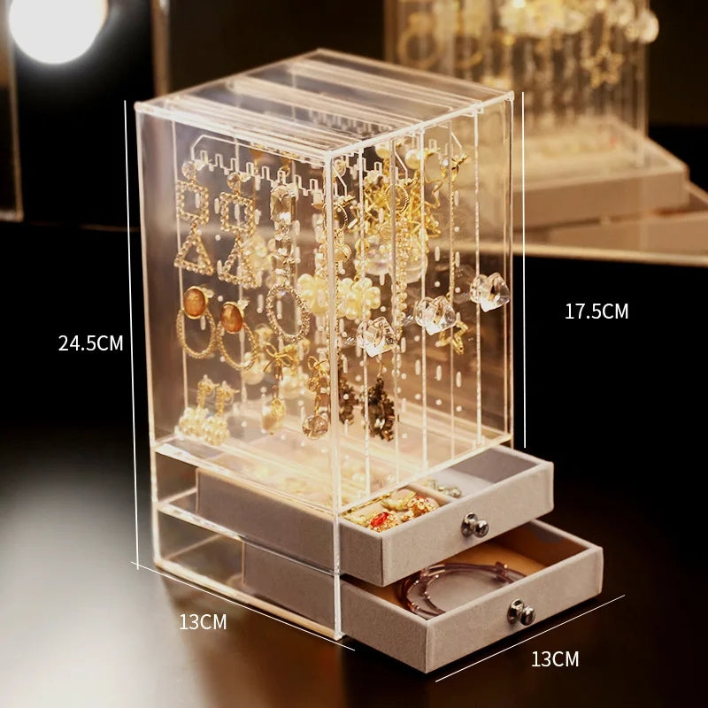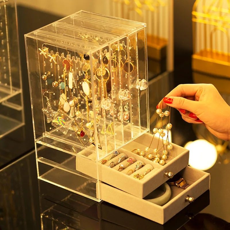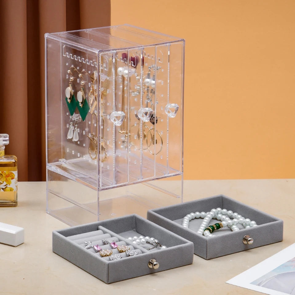 Acrylic Jewelry Organizer 2 Drawers 3 Earring Hanger Two-in-one Clear Rings Bracelets Necklaces Box for Women Girls Gift Travel Jewelry Box
