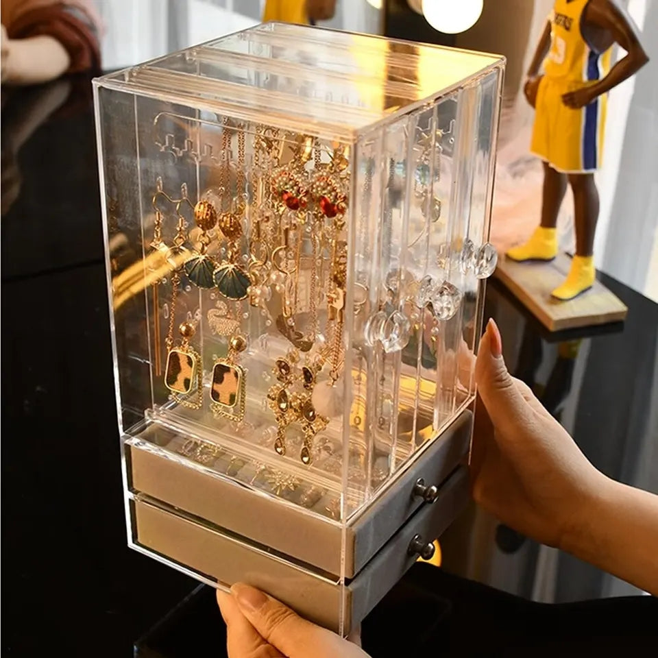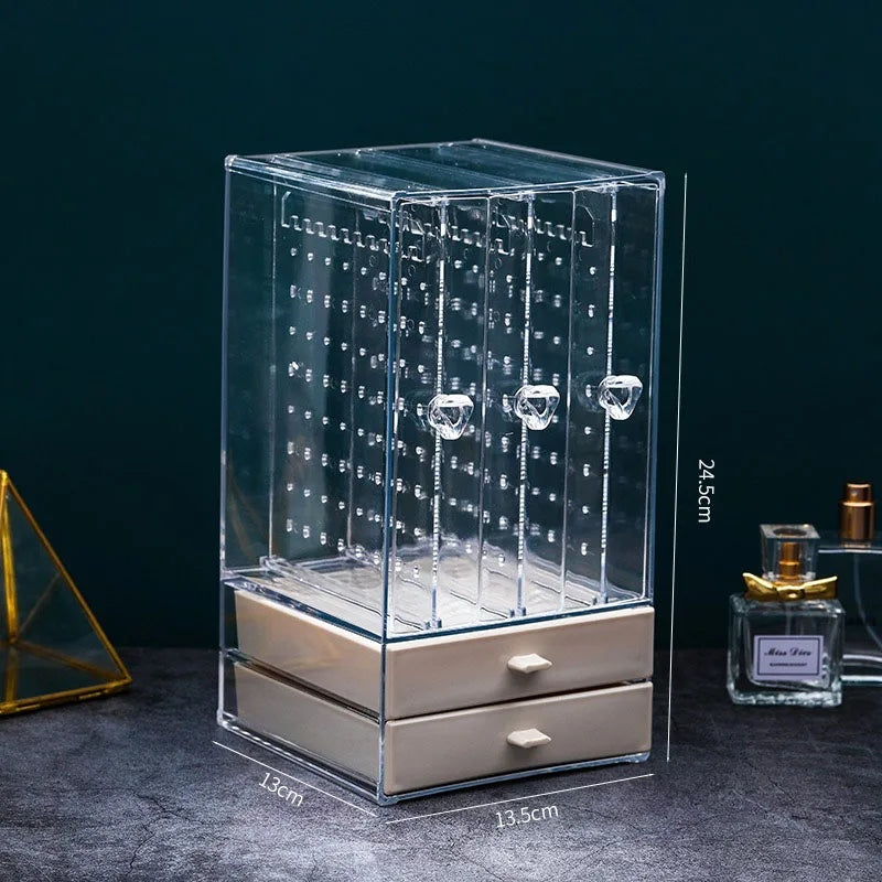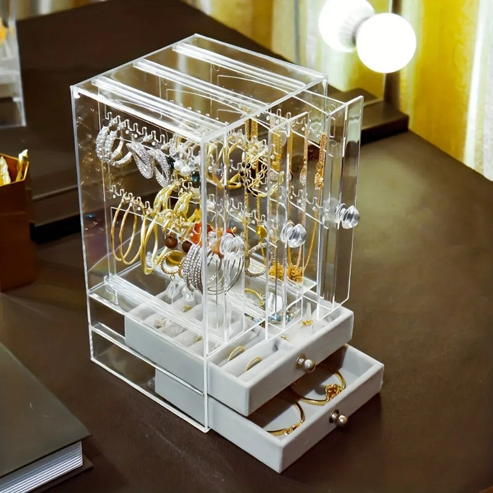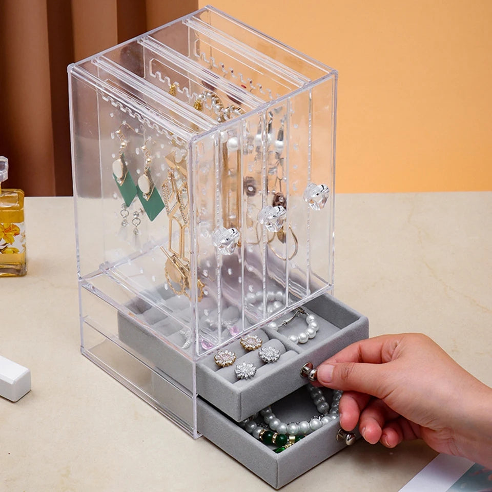 Acrylic Jewelry Organizer 2 Drawers 3 Earring Hanger Two-in-one Clear Rings Bracelets Necklaces Box for Women Girls Gift Travel Jewelry Box
