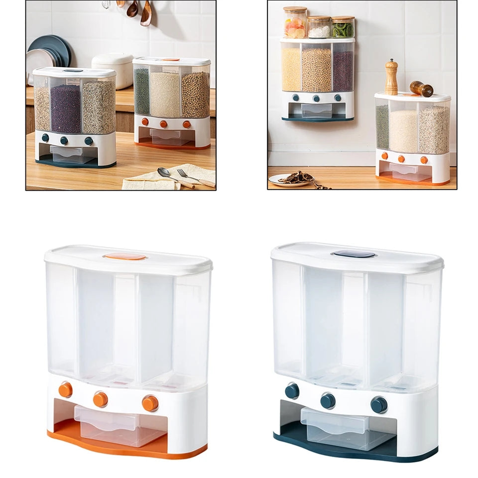Sealed Design: The sealed design can keep the freshness well, and the button can control the grain exit conveniently, which is very convenient for dry food storage and control.
