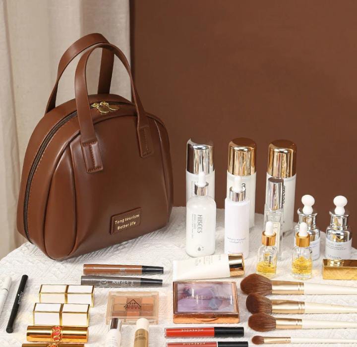 【Practical and durable handle】The travel makeup bag is made of PU leather fabric, easy to clean, The PU leather cosmetic bag zip and cosmetic travel bag opening are well designed, making it an easy to use and very practical zip bag. The sturdy thickness makes the bag more durable and easy to clean