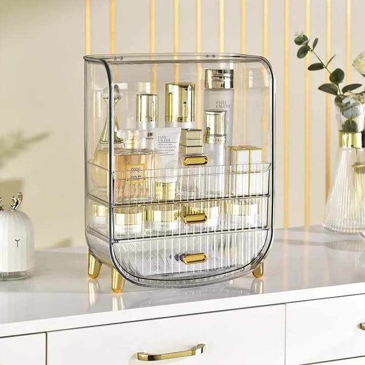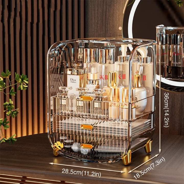 【Upgrade Large Capacity】This skincare organizer drawers can store high bottles of water emulsion, lipstick, perfume, face cream, isolation, Makeup brush, facial mask, etc. And cosmetic storage box is designed with three layers of drawers for orderly skincare. Save a lot of space. Make the desktop clean and organized.
